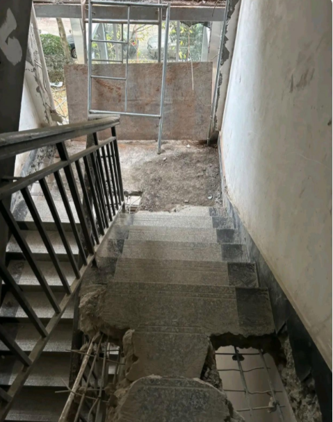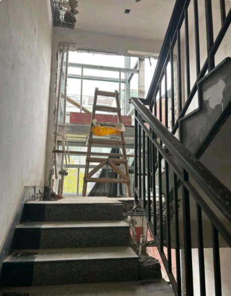 步梯房加装电梯,让我感到非常惊讶的是,施工过程竟然要将楼道敲得如此破烂!