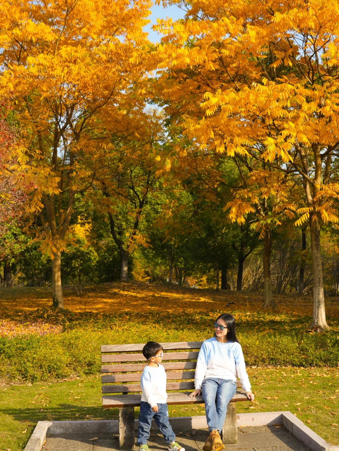 👆停好车往湖边走,看到游船码头后往左转,这里有大片红杉林,还有吊桥,可带娃在这露营野餐