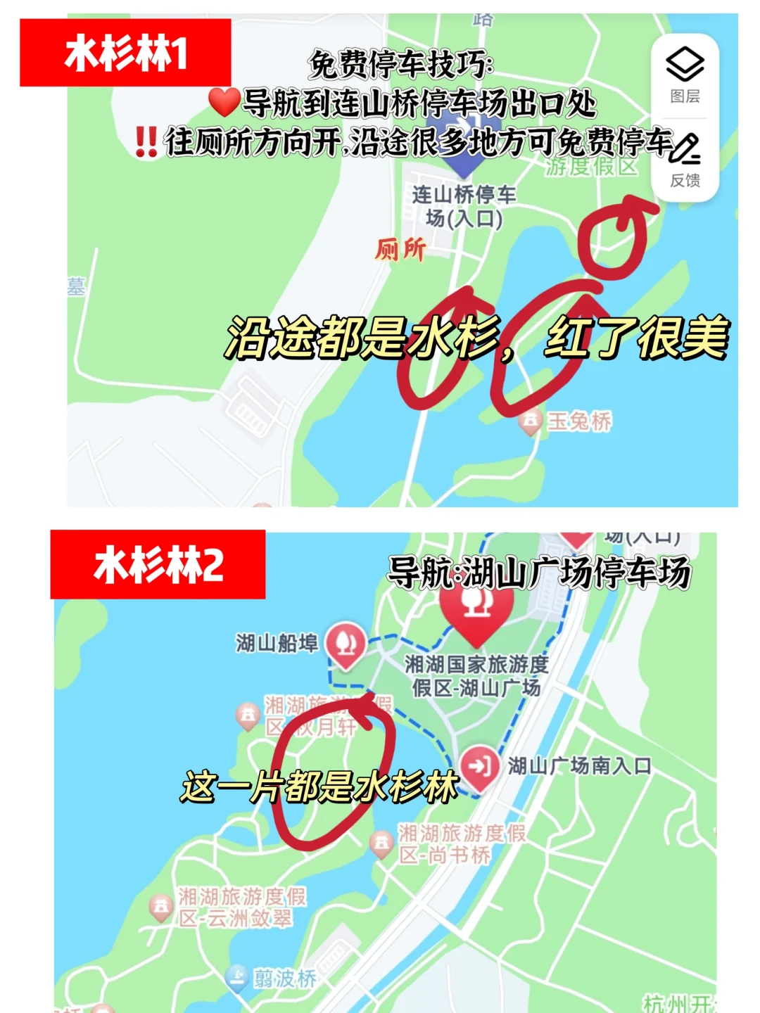 👆这条路线串联湘湖两大绝美水杉林