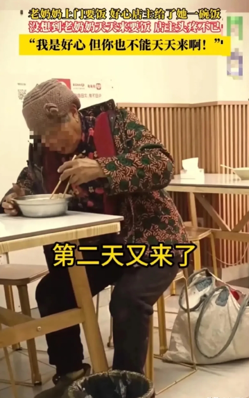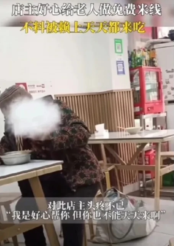 “好人太难做了”,近日江苏,一位老奶奶上门讨饭,而好心的店主看到就给了做了一碗免费的米线,没想到这个举动让老奶奶记住了,从此天天都来吃,店主也是头疼,店主:我是好心,但你也不能天天来啊!