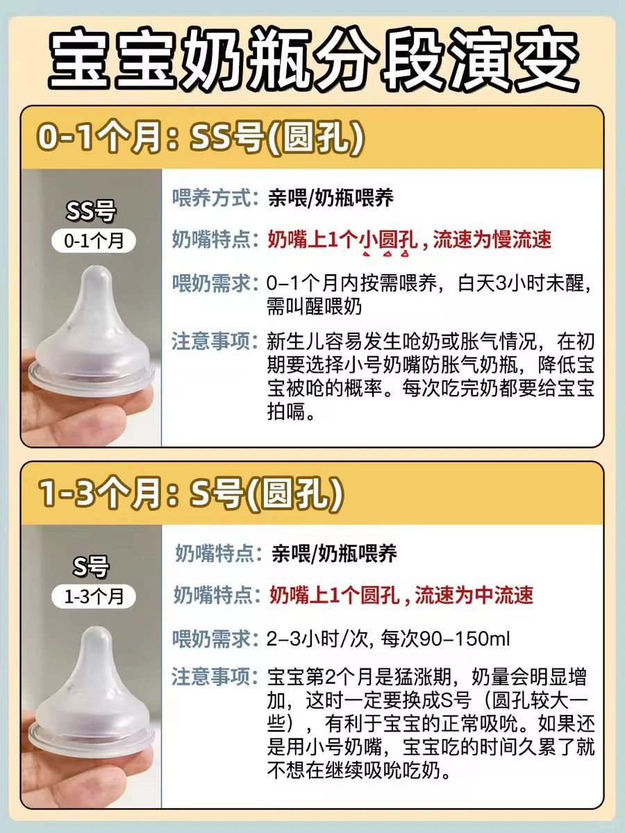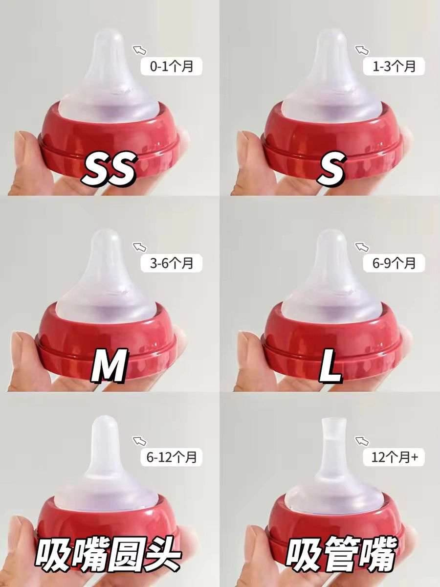 奶嘴大小会影响宝宝吃奶,随着宝宝的成长和月龄的变化,在不同月龄要选择不同流速的奶嘴,有利于宝宝正常喝奶和口腔发育,也能降低呛奶风险!!