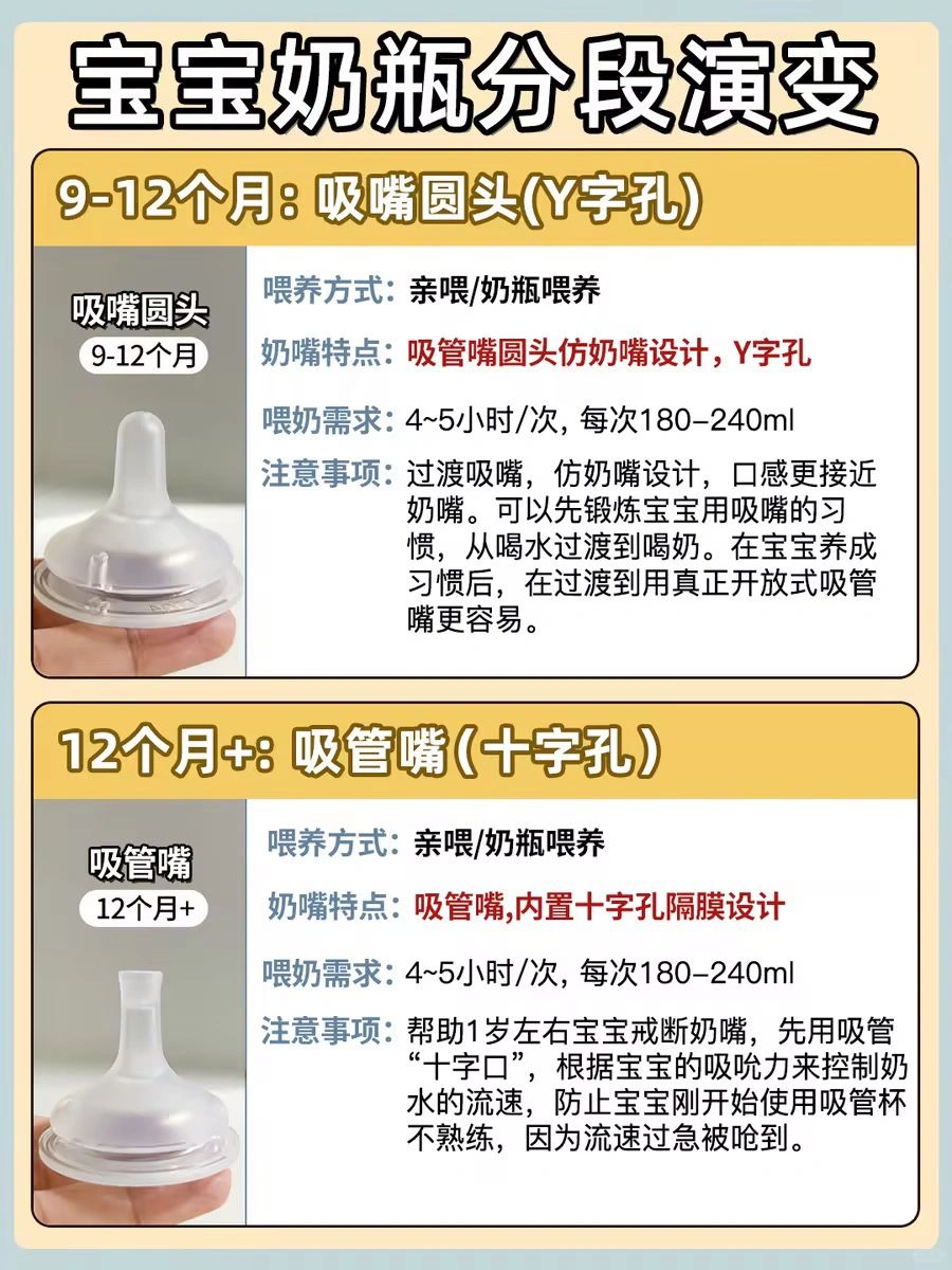 4️⃣一般2-3个月左右更换一个型号,1岁后记得用吸管杯;