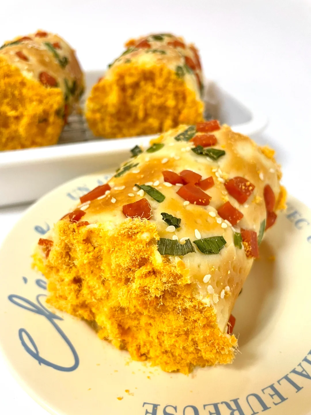 🍞松松软软的面包搭配沙拉酱和肉松,一口咬下去!太满足啦!