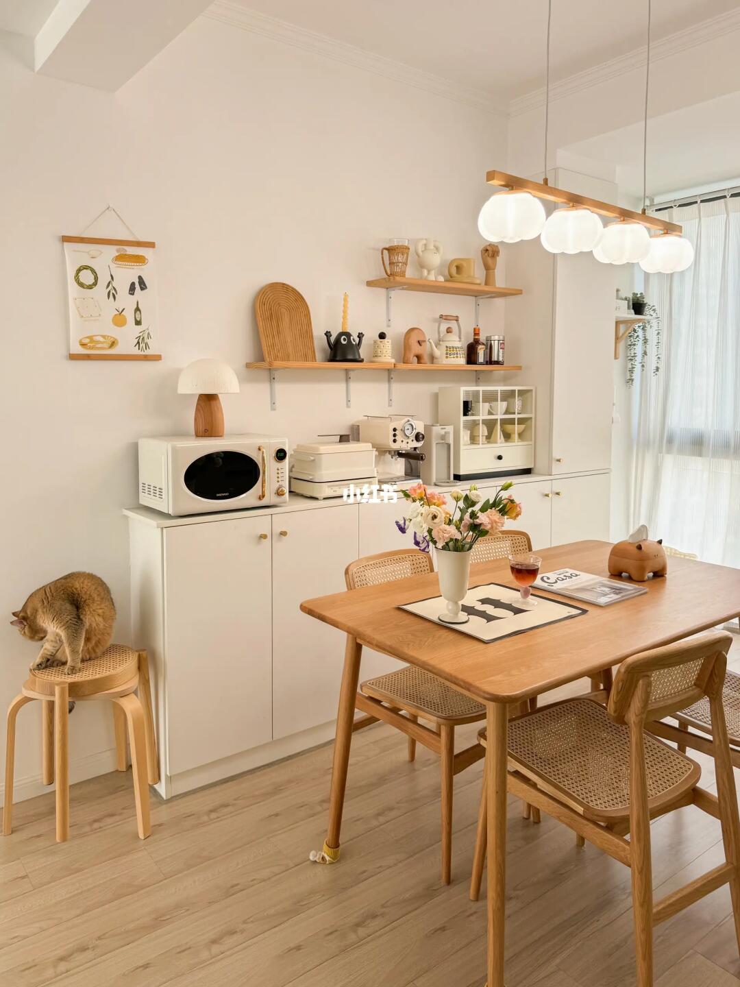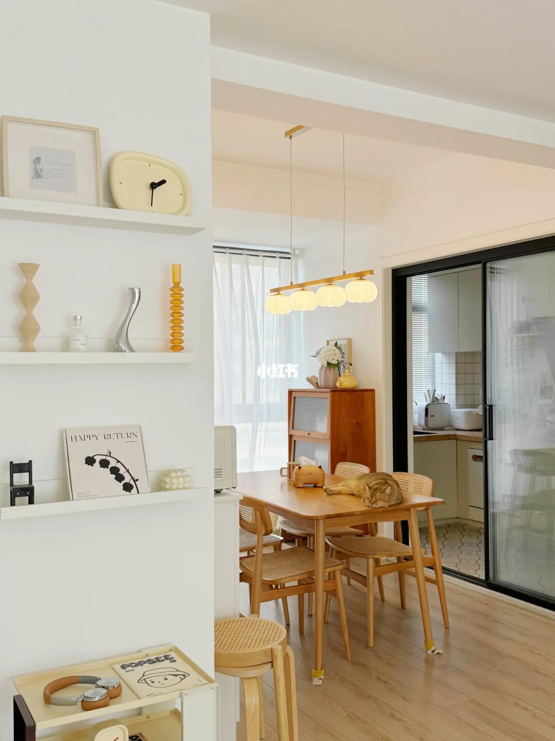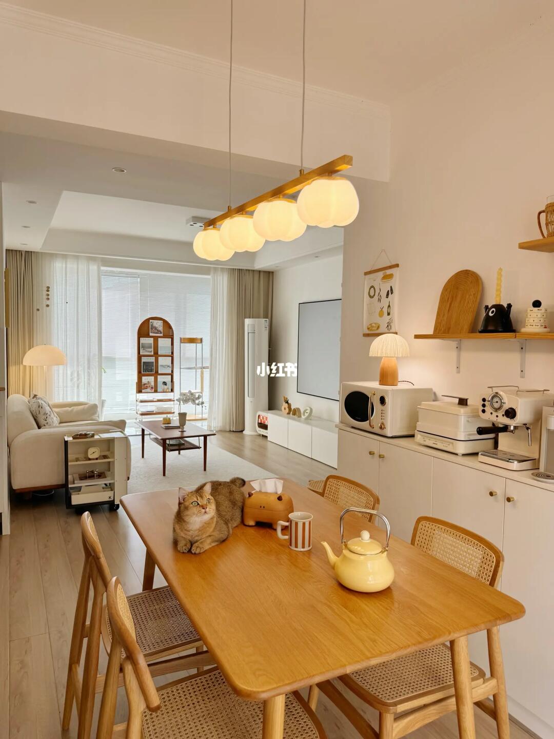 70平小户型,自己设计自己找师傅装修的小家。灯光布局也是我搞定的,其实没有想象的那么复杂,多翻翻可以找到很多案例来参考📖 - 客厅灯光💡 客厅面积不大,简简单单双眼皮吊顶,无主灯用了超薄斗胆灯来代替,简约耐看,亮度也足够,而且不压层高,让客厅看上去更通透~四周用的射灯,洒出来的小山丘很有氛围感。 - 餐厅灯光💡 我喜欢原木风,餐厅灯入了鹿家良品家原创设计的棉花吊灯,家里使用了很多原木元素,这款灯也和我家很搭。可爱的棉花造型很戳我,看上去轻盈绵软,打开灯整个餐厅都很明亮,光线也很柔和,暖暖的灯光洒在食物上,看上去都超有食欲~ - 卧室灯光💡 我家卧室硬装很简单,没有复杂吊顶,选了一盏造型特别的曲奇吊灯,打开后温馨明亮,曲奇饼干的造型很可爱,光线也很护眼,长时间在书桌学习办公眼睛也没有那么疲劳~ - 灯具你咋买这么贵❓ 当初买完灯邻居就说我灯买的太贵了,便宜的其实都差不多,可是他却被打脸了😂入住这么久,我家灯具没有坏过,所以没有踩过坑。他倒是常常抱怨他家灯的质量问题。 其实灯具还是有很大区别的,我是做了很多功课,最后全屋灯具都是在鹿家良品入手的,安装后就感觉质感很好,使用这么久了也很满意,没有出现过什么问题~鹿家良品的光源都还蛮护眼的,光线柔和很舒服~ 而且服务安装很省心,还有十年质保很放心,其实从长远来看,选贵的灯不容易坏,不需要反复更换,其实成本反而更低。而且光源更好更护眼,用起来也更安心💛 -