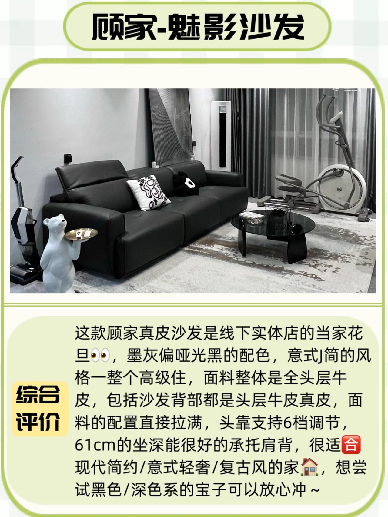 这款顾家真皮沙发是线下实体店的当家花旦👀,墨灰偏哑光黑的配色,意式J简的风格一整个高级住,面料整体是全头层牛皮,包括沙发背部都是头层牛皮真皮,面料的配置直接拉满