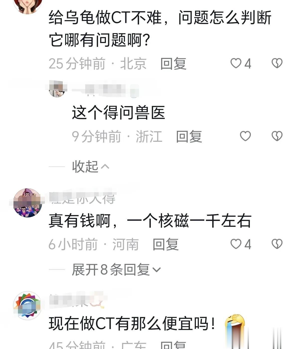 保定一女子晒出闺蜜带宝贝王八做ct,称长这么大头一回看见给王八做ct的。 网友: