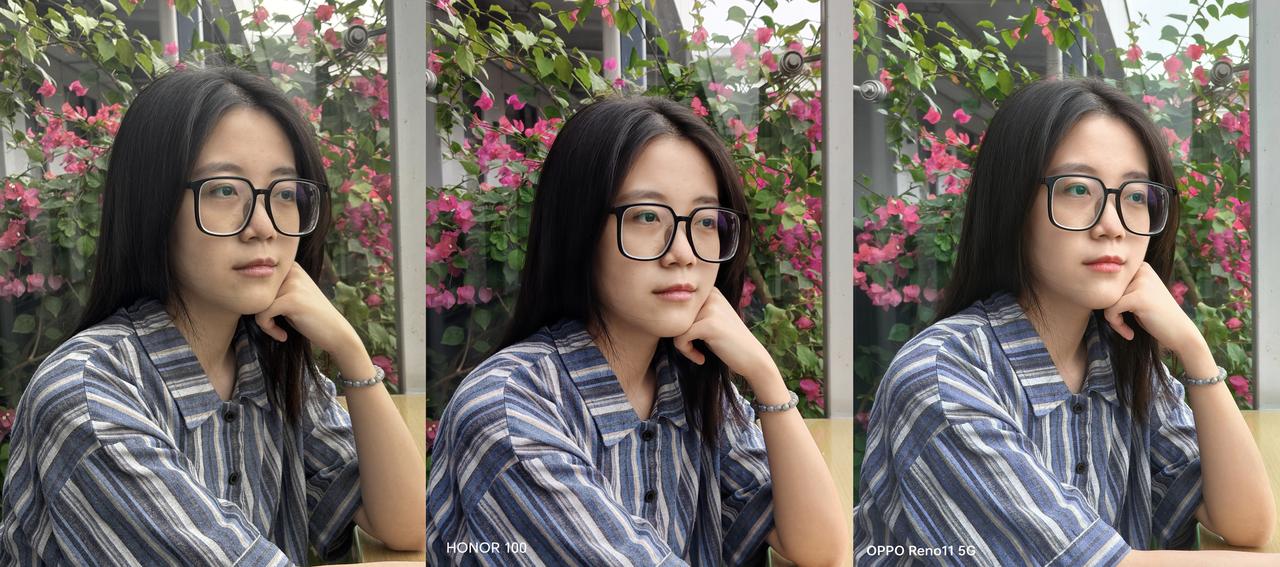 讲真,iPhone标准版跟Pro版在体验方面的差距实在太大了,完全不像同一代的产品,我只能说,库克这“刀法”是越来越精准了啊!就拿这一代15系列来说,标准版和Pro版之间的处理器、屏幕、相机都有较为明显的差距,体验差距大不是没道理的。 对比来看,国产品牌的“刀法”则厚道很多,标准版、Pro版之间一般只会在处理器方面做区别,影像、屏幕等方面则没有太大的差别,所以标准版的体验也相当不错。最近就看到有网友拿iPhone 15、OPPO Reno11以及荣耀100进行了拍人像对比,都是标准版机型,但没想到差距还是挺明显的。 从实拍图来看,iPhone 15拍出来的人像照确实很真实,但这种写实风对于人像来说不太合适,或者是不是那么讨喜,用户拍完以后还要到第三方修图APP中进行后期美颜,一套操作下来确实麻烦。而OPPO Reno11、荣耀100拍出来的人像照则会更加讨喜,荣耀100拍出来的人像照侧重于调整肤色,看起来不会显得皮肤很蜡黄,会更上镜一些。 而OPPO Reno11拍出来的人像照,无论是肤色还是皮肤纹理,看起来都最自然,属于那种拍完照就能直接发朋友圈的程度了,估计这种风格会是更多人喜欢的,不愧是号称单反级人像表现的手机,拍人像确实有两手!#OPPO Reno11#