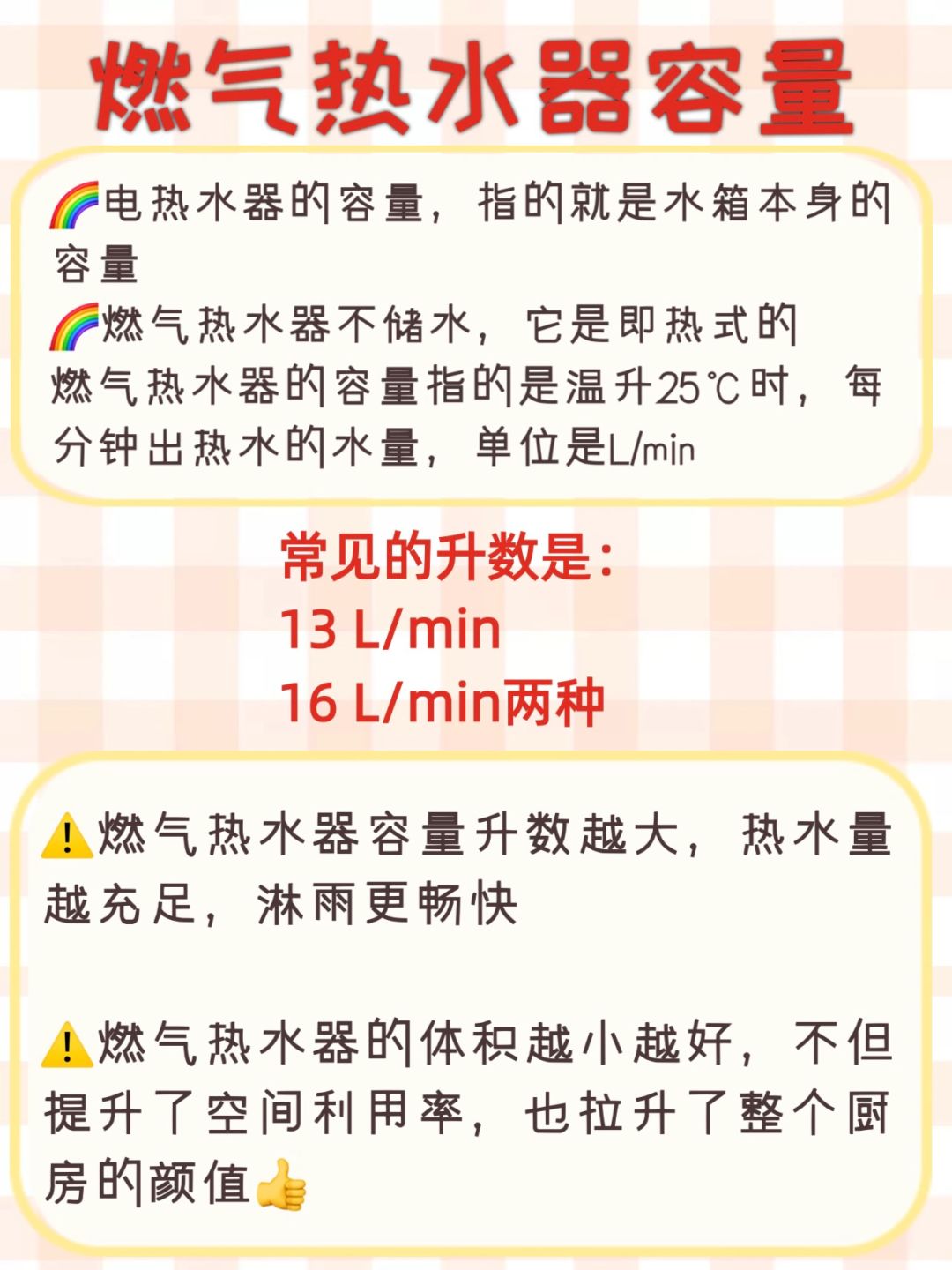 ⚠️燃气热水器的容量升数越大,热水量越充足,淋雨更畅快