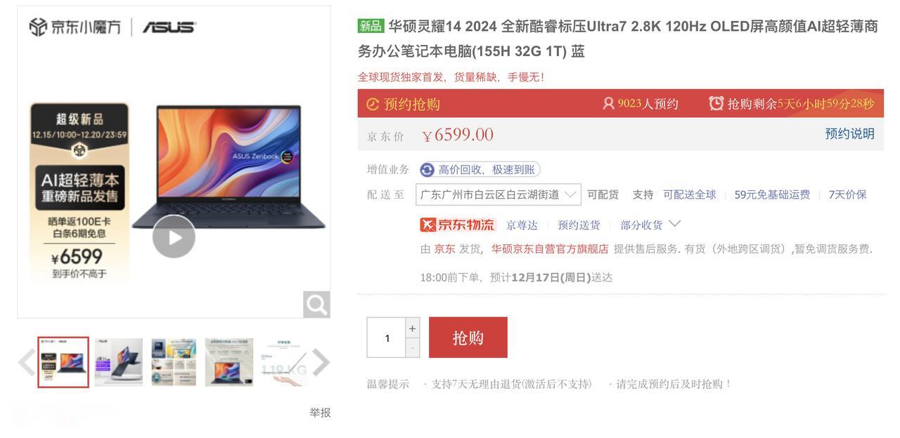首款酷睿Ultra轻薄本来了,买不买? 刚看到华硕上线了灵耀14 2024,看了下配置,感觉还是挺不错的[奸笑]首发搭载酷睿Ultra 7 155H处理器,用上了全新的Intel 4工艺,性能、能效比都提升了很多。而且还有2.8K 120Hz OLED屏幕、32GB内存+1TB存储、75Wh容量电池等配置,加上机身只有1.19kg重,确实很吸引人啊! 最后是价格,华硕灵耀14 2024目前定价是6599元,估计这个配置华硕不会一直卖这个价,说不定到时就涨价了,想买的早下手!#首款Ultra笔记本# #华硕灵耀14 2024# #AI超轻薄本#