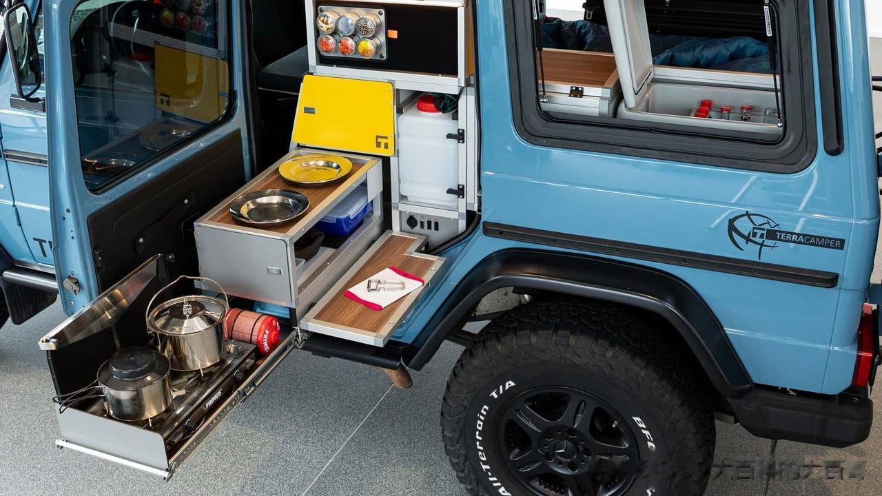 德国房车改装公司Terracamper发布了一款适用于奔驰 G 级的露营车套件。全套改装费用为1.1万欧元(约合人民币8万元),相对于车价绝对是小意思。不过花8万元把自己的奔驰大G改装成这样,绝大部分国内车主怕是没这个勇气吧?#奔驰G级##越野车##露营#