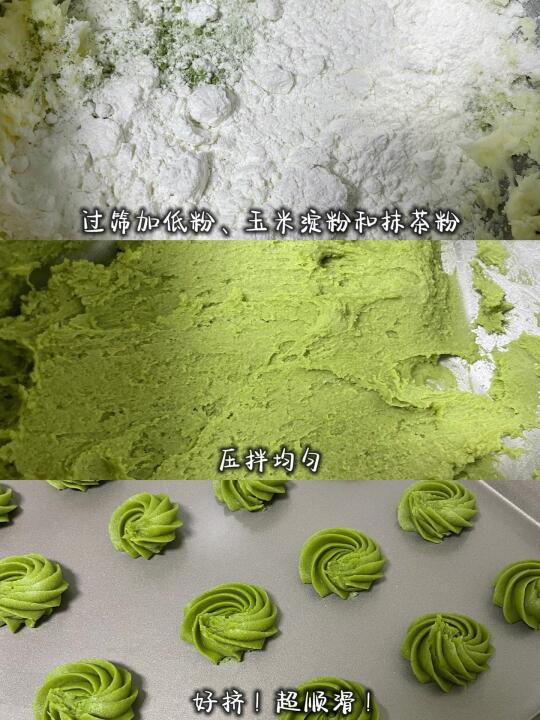 无盐黄油80克|糖粉30克|淡奶油25克|低筋面粉80克|玉米淀粉15克|抹茶粉5克