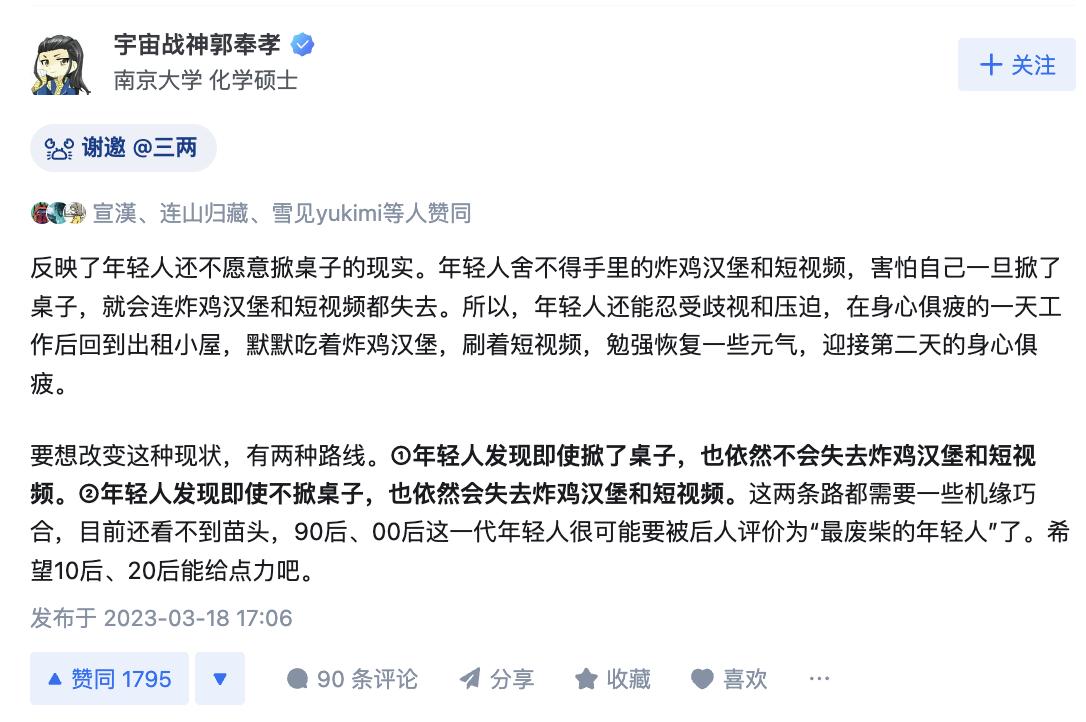 #那些直击灵魂的年度问题# 有些问题之所以被称为「年度问题」,那是有一定原因的。比如:职场上除了「躺」与「卷」,是否有第三种选择存在?看了网友们的认真回答,有种思路打开的通透感,纠结躺和卷之前,不如先真正审视一下自己。