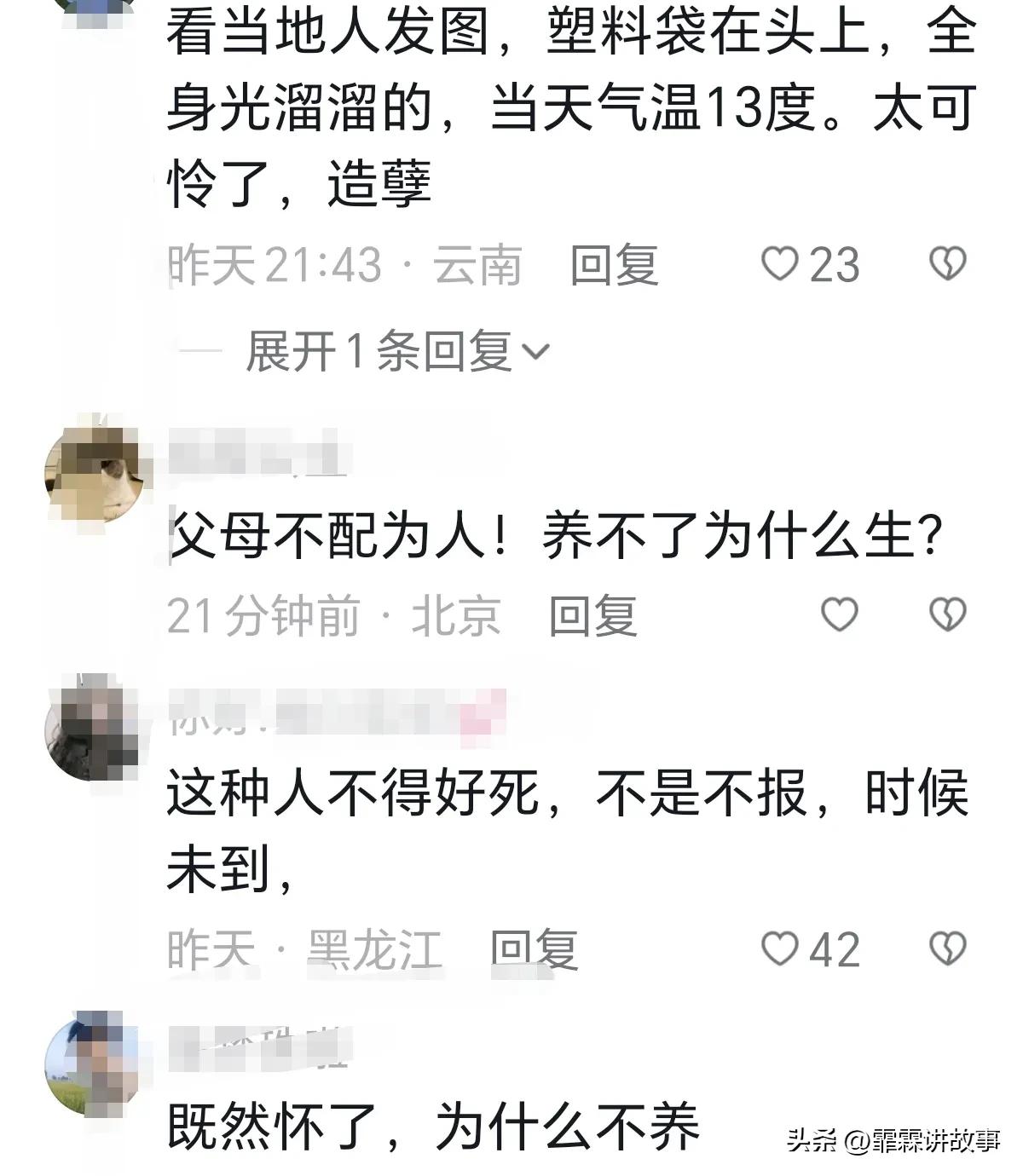 近日海南海口,一位保安在垃圾桶里发现了一个女婴,女婴用简单塑料袋包裹,好心人脱下大衣包裹女婴,保安将女婴抱进保安室,公安还在侦办当中,在没有结案之前,不能领养,福利院称也没有送到他们那里。 网友:父母不配为人!养不了为什么生? 网友:看见当地人发图,全身光溜溜的,塑料袋在头上,当天13℃,太可怜了,造孽啊! 网友:既然怀了,为什么不养?