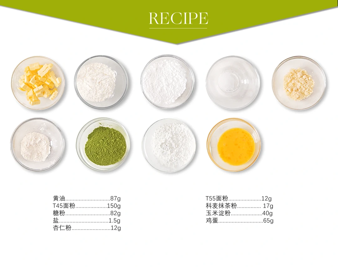 . 🍵今天分享一款适合冬日的下午茶点,mini的大小,一口一个好吃还不会粘掉口红💄 . 🍵配方看图上哦 . 🍵注意要点 1⃣️ 抹茶沙布列挞壳 1、过筛的抹茶粉、糖粉、T55面粉、玉米淀粉和T45面粉倒入碗中,加入杏仁粉和盐混合均匀,再加入黄油搅拌至松散的砂砾状,加入提前搅匀的蛋液,搅拌至面团成型,保鲜膜密封冷藏3小时以上。 2、擀压至1.5mm厚度冻硬,用直径5cm的圆齿模刻印出形状冻硬,用叉子在挞皮上戳出小洞,平放到模具(提前喷涂脱模油)上,平炉上下火170°C烘烤 30 秒后取出,用手辅助将挞皮贴合模具表面,再次入炉同温度烤制 7分钟,出炉冷却脱模备用。 . 2⃣️抹茶芝士舒芙蕾 1、软化的奶油芝士、牛奶、淡奶油、砂糖 A、蛋黄和过筛的 T45 面粉、抹茶粉,混合搅拌至融合均匀。 2、加入融化的黄油(55-60°C)拌匀。 3、蛋清与砂糖B打发蛋白霜,打发至湿性发泡,与抹茶面糊翻拌均匀。 . 3⃣️ 抹茶甘纳许 1、可可脂和白巧克力微波融化至35-40°C,加入过筛的抹茶粉搅匀。 2、加入淡奶油(80°C),用均质机乳化至顺滑质地。 . 4⃣️ 成品组装 1、在挞壳内裱挤入抹茶芝士舒芙蕾面糊至8成满,平炉上下火120°C烤制15分钟,出炉静置降至常温。 2、抹茶甘纳许降温至35°C,裱挤到抹茶芝士舒芙蕾上。 .