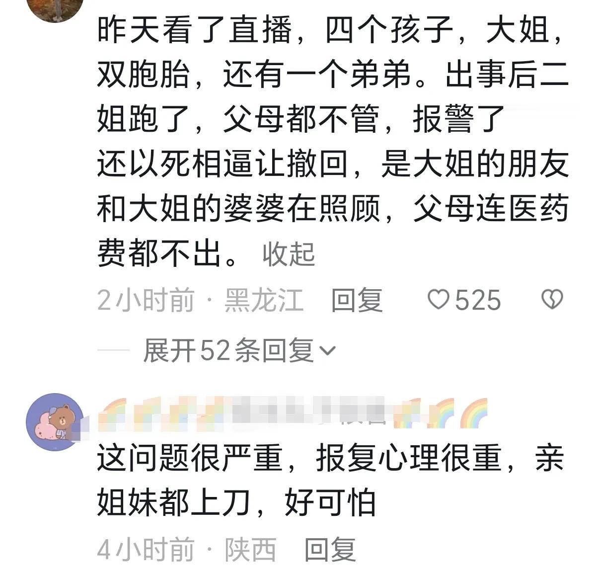 近日河南,什么样的深仇大恨,双胞胎姐姐要拿刀划伤亲妹妹的脸,并弄断妹妹的肌腱。 大姐叙述自己两个双胞胎妹妹,大妹妹以为小妹妹拔了她的插排,发声争吵,而实际是停电了,大妹妹趁小妹妹躺床上睡觉,拿眉刀要刮花小妹妹的脸,小妹妹本能用手挡住脸,最后双手肌腱都断了。 网友:撤案了,母亲不忍心另一个孩子坐牢。 网友:报复心理很重,亲姐妹都上刀,好可怕。