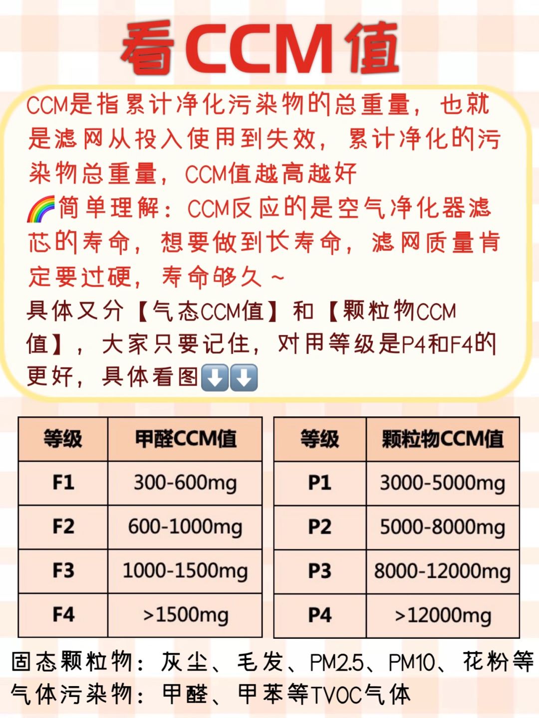 CCM是指累计净化污染物的总重量,也就是滤网从投入使用到失效,累计净化的污染物总重量,CCM值越高越好