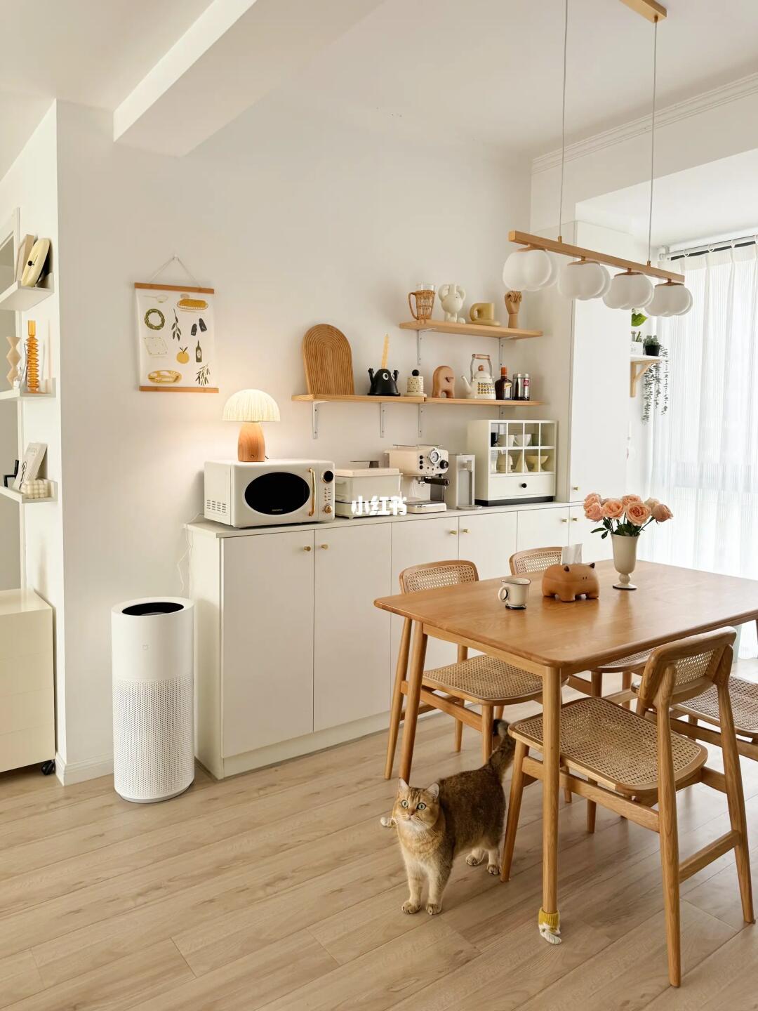 小户型硬装从简,不做复杂背景墙,简单刷个大白真的通透显大~简简单单的装修不仅省钱还耐看,入住3年依旧看不腻。入住后慢慢添置喜欢的家电软装,我的小家越住越舒服[派对R]