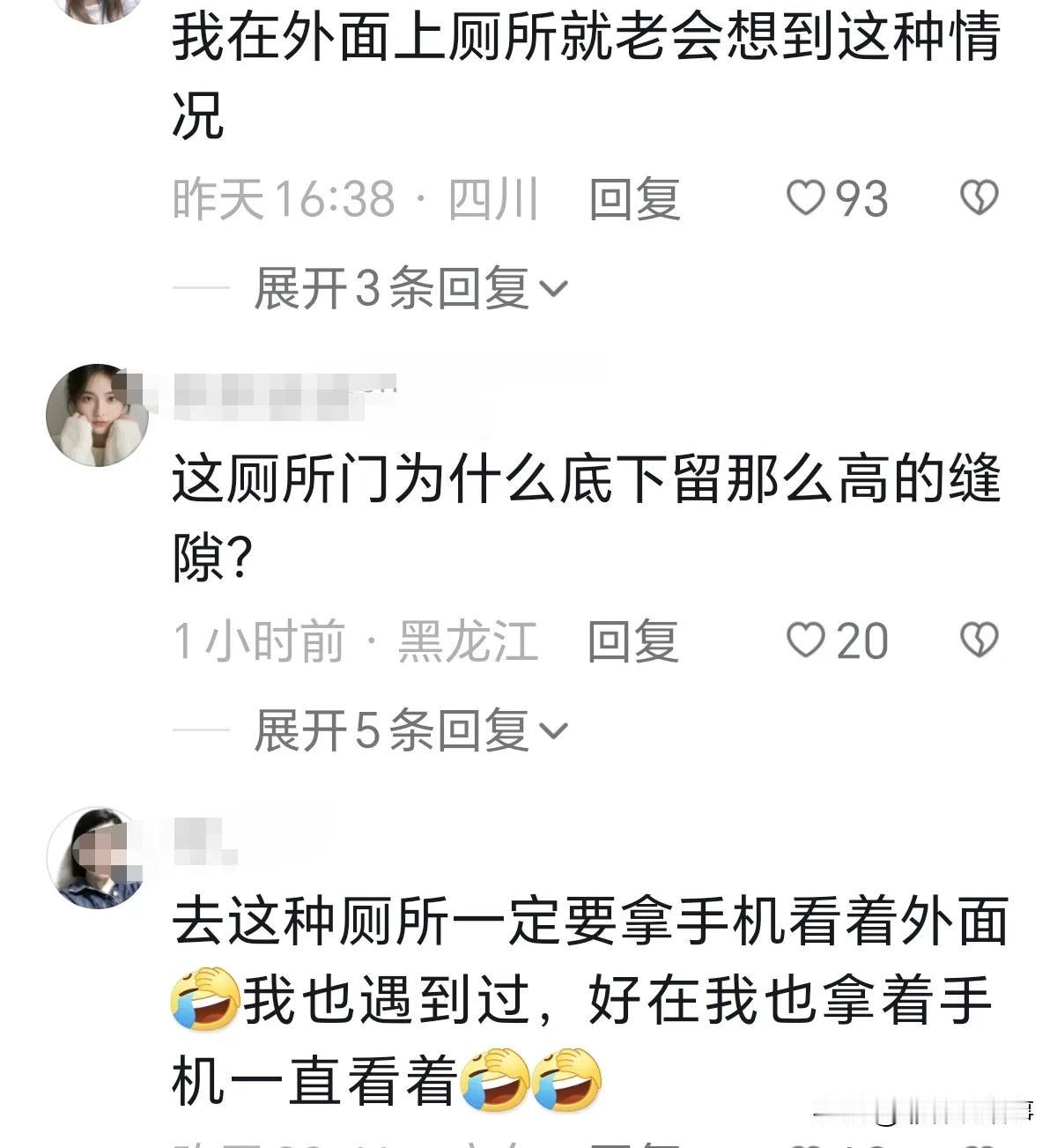近日湖北,一女子上公共厕所,遇到了偷窥狂,女子吓得瑟瑟发抖,慌乱中拍下视频保留证据,女子称自己报警的时候声音都是颤抖的。 我也遇到过这种偷窥狂,7.8年前在外地学习,当时厕所门都被拽坏了,报的周末的培训班,发信息给男同学,男同学来救了我,他们赶来的时候,坏蛋已经跑了,我当时胆小怕被报复,都没敢报警。 网友:我在外面上厕所,老遇到这种情况。 网友:上厕所一定要带手机,拿手机看看外面,我也遇到过。