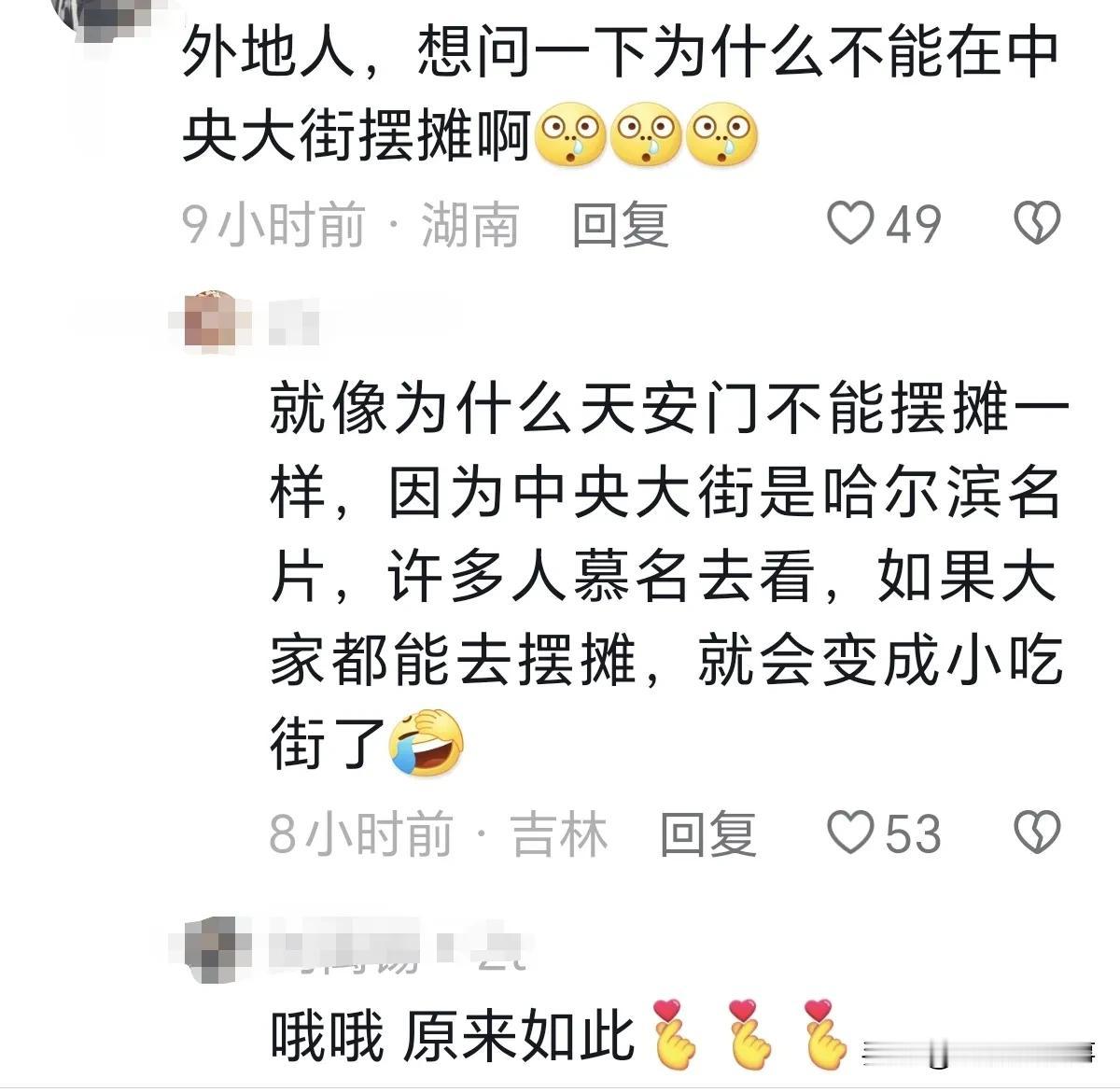 老嫂子炸串老板发视频,给哈尔滨道歉。 原因是他前几天发视频,吐槽哈尔滨中央大街不让他摆摊,希望中央大街一视同仁,为什么要针对他,他的餐车突然消失了。 今天7日又写道歉信,说自己经营地点在红砖街不是中央大街,但网友吐槽,之前你发视频明明吐槽的就是中央大街针对你,不让你摆摊,这会又说红砖街了,更有探店博主发出老嫂子炸串的卫生堪忧的视频。 湖南网友:外地人想问问哈尔滨中央大街为啥不让摆摊啊? 吉林网友回复湖南网友:就像为什么天安门不能摆摊一样,因为中央大街是哈尔滨名片,许多人慕名去看,如果大家都能去摆摊,就会变成小吃街了。 网友:在哈尔滨40年都没见过中央大街摆摊。 #哈尔滨引起热议#