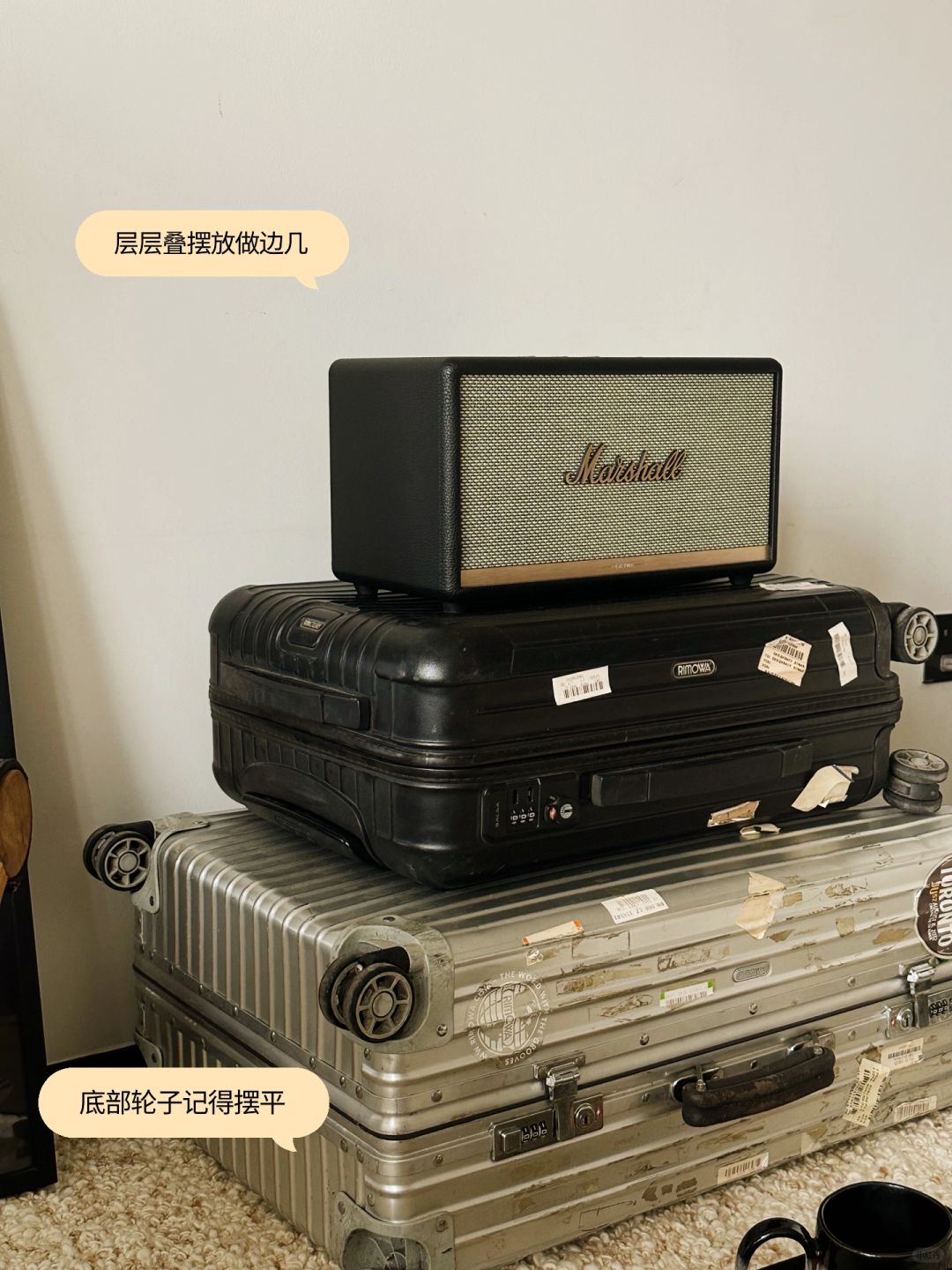 有故事痕迹的旧物摆在家里更有生活感! Hey,我是YY 听我的,家里不用的行李箱千万不要扔! 旧物利用,好看又省钱 - 搬入新家时发现有几个不能用的行李箱,外表已经凹陷生锈轮子不灵活,遍布各种使用痕迹,但我不舍得扔,就是喜欢这种有经历感的旧物。况且它们都是唯一不会缺席陪我去过大大小小不同地方的忠诚伴侣,承载着很多旅程中的回忆和故事! - 然后突发奇想把它们摆在家里的一角纪念一下,用作音响边几,令这个休闲的空间拥有了生活感和故事感。相比现在市面很多新款边几,感觉现在更有意义和个人风格。 - 也许当家拥有一个休闲的角落,看到这些有故事的旧物,很容易会让人回忆怀念当时经历的各种时光吧! - 不知道你们会不会把有意义的旧物利用起来呢?