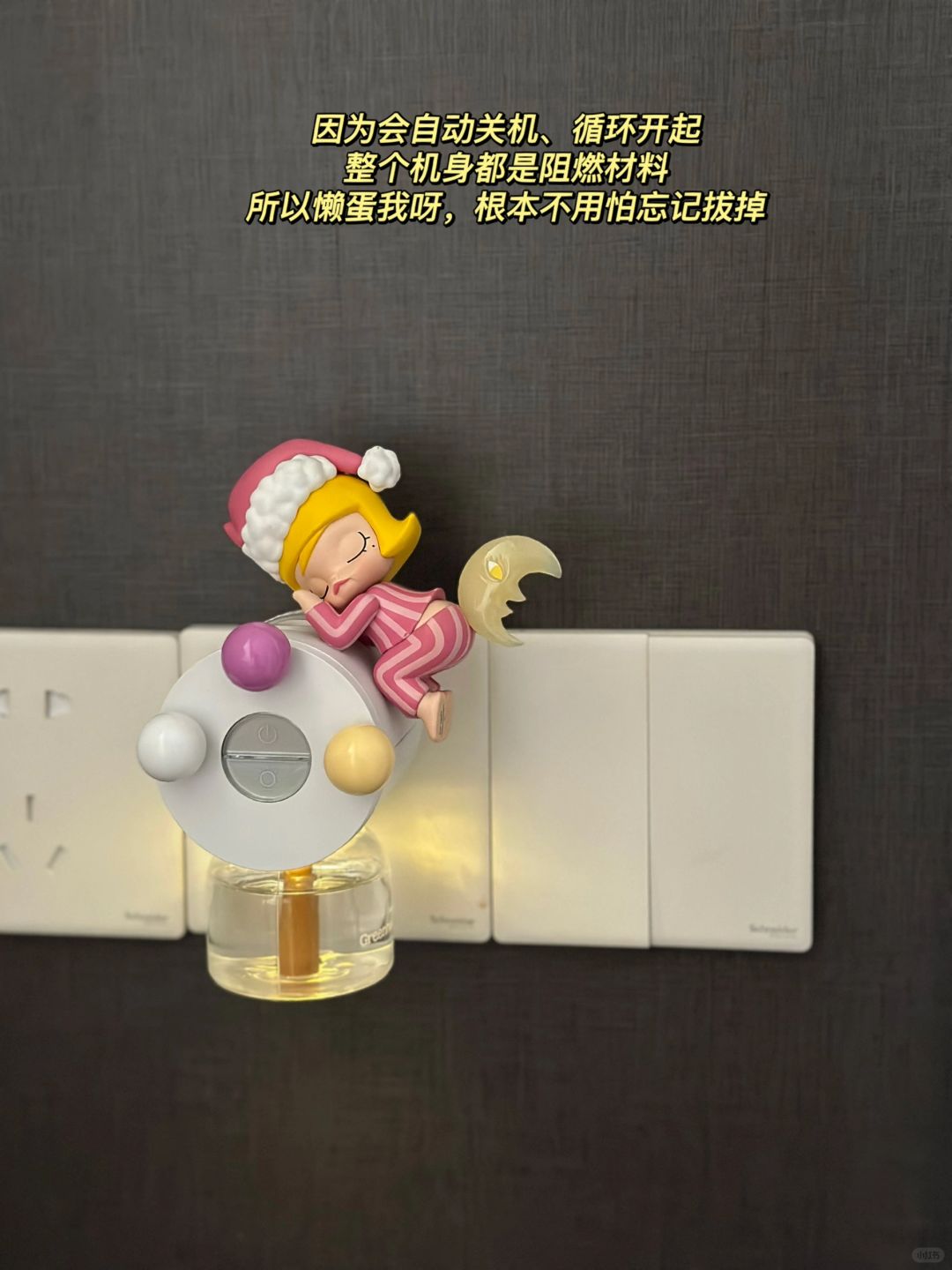 家居DIY|“时代的眼泪”,要怎样再利用? 🖤 塑料小人退坑好久了 依然还记得为了买到大热款 熬夜排队的场景 💙 曾经molly的一天🔥的一盒难求 现在却只能躺在收纳盒的角落里吃灰 🧡 但我是个很念旧的人 总想让陪伴过我很久的人或者东西 都有好的归宿 💜 所以用在了驱蚊器改造上 她穿着粉红色的睡衣 趴在微微亮起的小夜灯驱蚊器上 也希望能给我一晚的安眠好梦 🤍 教程照例放在后几张 30s就能改造好(胶用的502) 好玩不难 🤎 希望每一个陪伴过你的东西 都能以新的姿态重新给予你快乐❤️