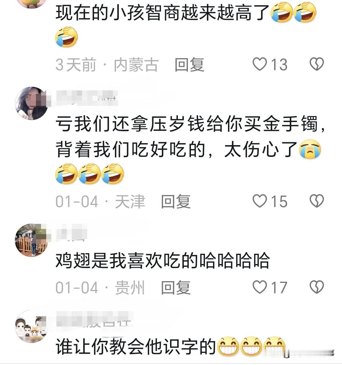 幼儿园小宝宝也太可爱了,妈妈背着他偷吃外卖,当他看见了外卖的账单,委屈巴巴的哭着说:“你现在吃东西都不告诉我了”。 妈妈还骗他说:“是超市购物单,没有点外卖”。 结果妈妈根本不知道,她儿子这些字都认识。 宝宝:鸡翅是我喜欢吃的,烤面筋是我喜欢吃的,还有鱿鱼全是我喜欢吃的,呜呜呜~~~我要和你绝交,我要告诉你妈妈,哼你等着。 网友:谁让你教他识字的? 网友:亏我还拿压岁钱给你买大镯子,背着我偷吃,太伤心了[流泪]