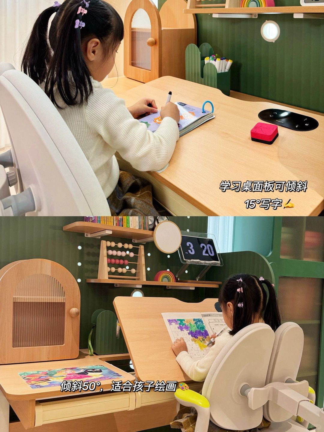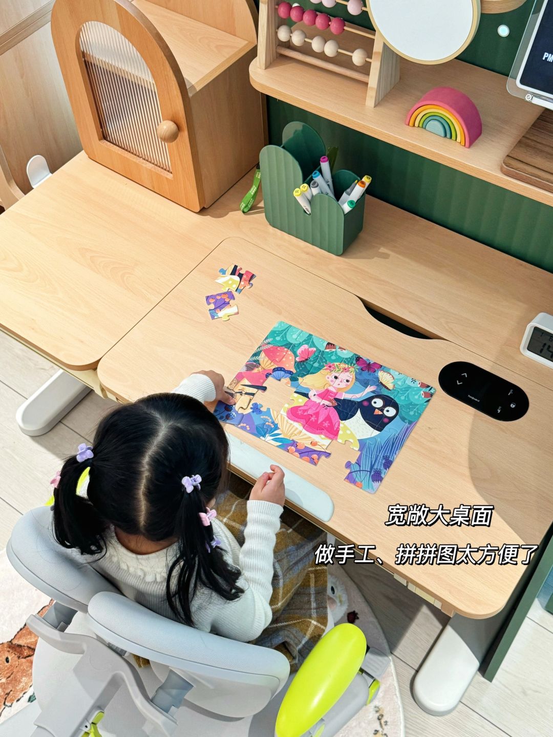 🌈装修不后悔决定之一👉打通阳台,扩容面积 . 🍓我家客厅阳台朝南,客厅开间4.5米,阳台开间4.2米,深1.9米。当初不顾家人反对封阳台,现在看来真的太香了~ 🍓阳台包边做的窄边不锈钢门套,宽1.4cm、哑光黑、易擦、不留指纹材质。 🍓抬高10公分做了地台,嵌入灯带,营造出一种悬浮的感觉。 🍓南阳台的采光很好,地台区既可休闲、也可学习、或发呆。 现在女儿也到了背起小书包上学的的年龄了,索性把阳台改造布置成了学习区,研究了一番,种草了护童的仙人掌掌学习桌: . ▪️它的隔断柜、学习桌、收纳储物柜,三个部分可以灵活自由组合,既满足了学习需要也满足了收纳的需求,边柜躺倒还可以当作陪读凳使用📖 . ▪️就我而言,学习桌要选大品牌才放心,护童呢在品控方面做的很不错。刚安装好也没有异味,摸上去没有毛刺,桌面耐磨扛造,水性笔也可擦掉,不再担心小朋友乱涂乱画了。 . ▪️仙人掌造型的书桌设计感满满,1.87m的大书架,学习书籍不再无处安放。大面积的洞洞板我家小朋友可喜欢了,可以随心布置自己的小天地😊加上置物架,收纳一目了然,桌面更加整洁有序 . ▪️学习桌高度可以在52~76㎝之间调节,适合身高1.2m-1.8m的小朋友,加上组合模块的收纳区,用到高中都没问题。桌面内嵌液晶触控屏,幼儿园的小朋友也可以轻松调整桌面高度,桌高、身高2档记忆高度,无需频繁地手动调整高度,太方便了。 . ▪️孩子写作业、画画常常不规范坐姿,当妈的蛮头疼的🥺。还好,护童配套的学习椅能够动态伸缩追背,坐下自动贴合背部,脊椎有足够的支撑力使小朋友腰杆挺直、背打开,端正坐姿好习惯。脚踏一键式锁定,坐下即锁,不会滑来滑去,真的很适合好动的小朋友,学习时不容易分心,提高学习专注力。 . 🌈阳台打通真的显大,多变的空间,给孩子一片小天地,游戏、学习更专注✌️