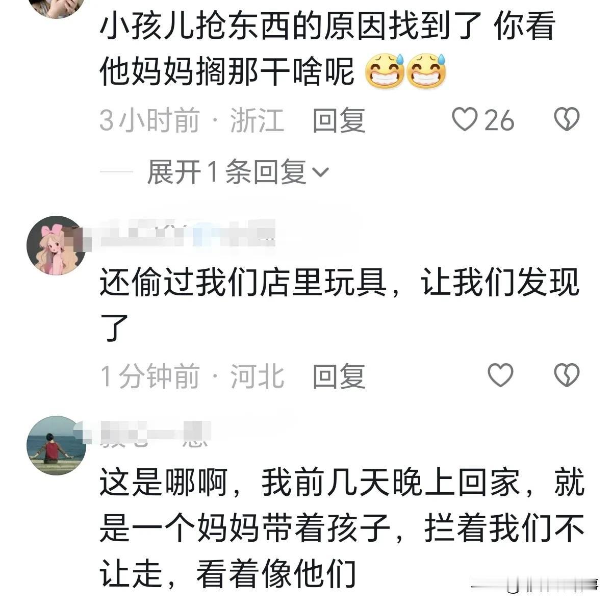 惯子如杀子,有这样的妈妈孩子这辈子完了,1月9日河北石家庄,一个小男孩抢了一位女生的冰淇淋,孩子妈妈不仅不管,还帮着孩子抢,并且还道德绑架说自己没钱,让这个女生把冰淇淋给她儿子,小男孩后面躺女生身上,终于抢到了冰淇淋,女生气的对母子说:“哪有你们这样的啊”。 河北网友:还偷过我们店里的玩具,让我们发现了。 网友:这个妈妈是孩子的仇人吧!她在教坏孩子。