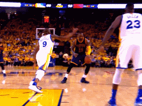 2015年总决赛,面对欧文跟乐福双双受伤缺阵,詹姆斯一个人抗起了全队,这球詹姆斯生凿呀!