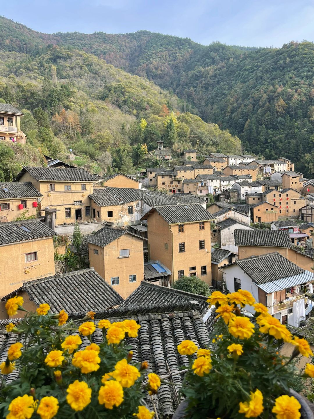 歙县第三天:北岸-金竹岭-深渡-阳产 “北岸村”有两个全国重点文保单位-吴氏宗祠和北岸风雨廊桥。村中最核心的景观是五凤门楼里的吴氏宗祠。祠堂最为突出之处在于石雕艺术,精美与完好程度很难得。至德堂护栏上有石雕的“西湖十景”,绕水池一周的护栏上雕刻了53件皇家祭祀礼器,这种礼器石雕出现于祠堂中的情况绝无仅有,属于明显的僭越。北岸廊桥上的长廊可为人遮风挡雨,东西两侧的墙上有花瓶、葫芦、桂叶等形状的窗孔。桥面上是徽商进出浙江的必经陆路,桥下河水流入新安江。 “金竹岭村”地处山上的地质灾害地点,全村人已经搬迁出去,只留下空荡荡的房子回忆着以往热闹的时光。 “深渡镇”是新安江山水画廊港口坐渡轮处,我觉得其实昨天沿着江边自驾比坐船有趣得多,所以在港口只拍了一张照片,从老婆婆那里买了好吃的橘子就匆匆离开了。 最后一站“阳产村”,主要看阳产土楼。车子停在游客中心,坐七座中巴上山。阳产土楼感觉与云南诺邓古村多少相似,但远不如诺邓精彩,也没有诺邓那些人文古建筑。这里的晒秋有些像婺源篁岭,都是人为的摆设而已。晚上住在了阳产的民宿土楼里,他家整个大露台都归我了。