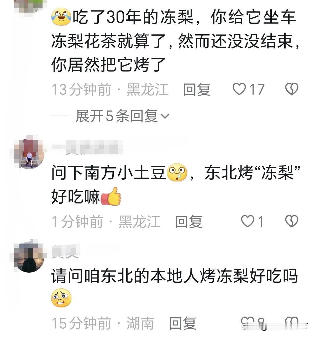 哈尔滨真的不够你开屏的了,冻梨雕花花茶就不说了,你竟然整出来冻梨雕花小烧烤,不是我说尔滨你啥意思,咋精致成这样呢?以前知道尔滨你洋气,但是不知道你精致成这样呢!南方朋友们,告诉下我们冻梨雕花小烧烤好不好吃[捂脸][捂脸][捂脸],真没吃过,这种仙品是啥味[呲牙][呲牙][呲牙] 网友:吃了30年冻梨,你居然把它烤了? 网友:尔滨有种骚💼的感觉。
