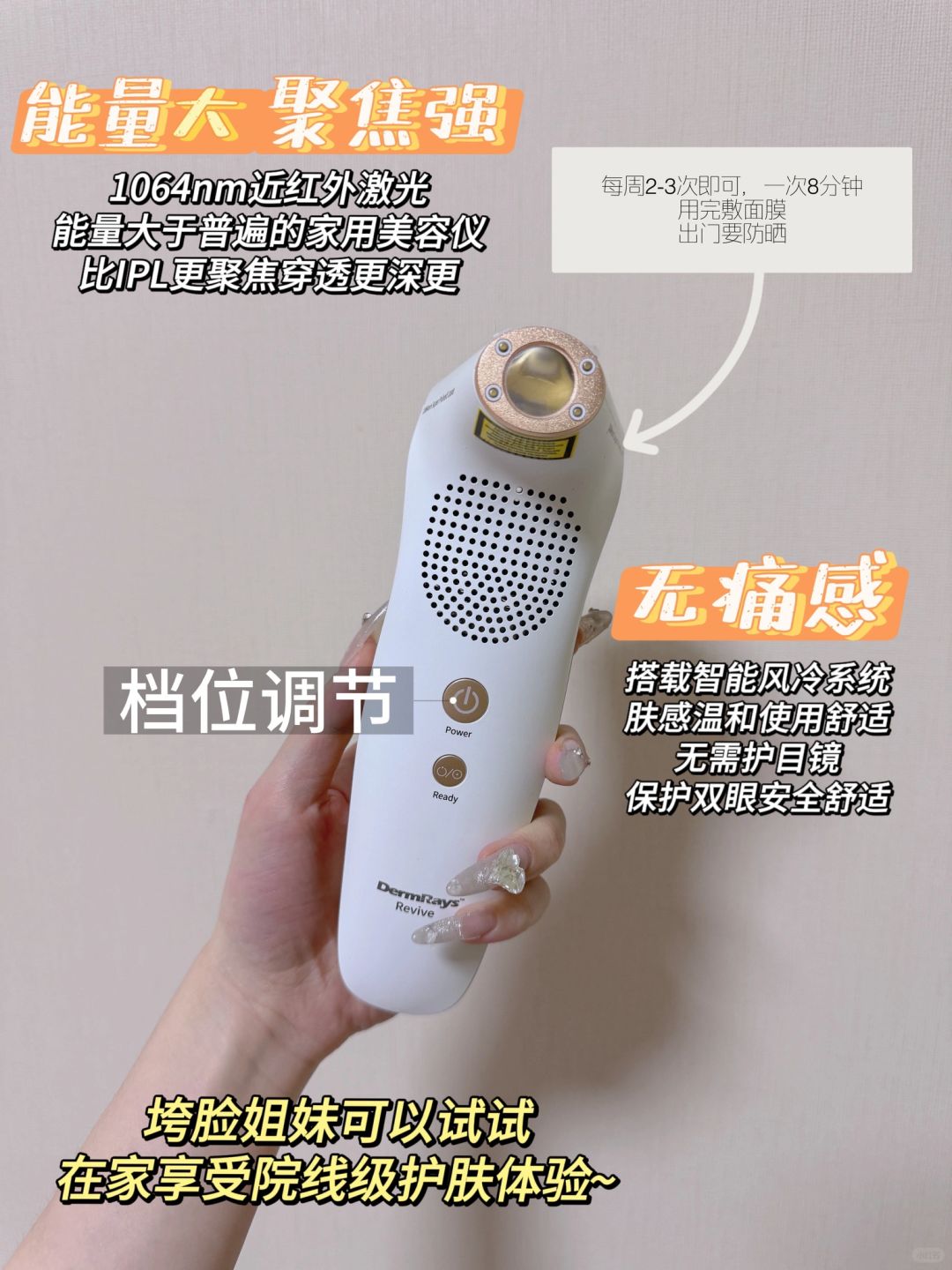 使用也超级简单,紧贴皮肤后就可以出光了,不用戴护目,也不用涂抹凝胶就可以直接上脸了,因为1064nm属于近红外光,是不可见光,会更放心,这就很便利了~