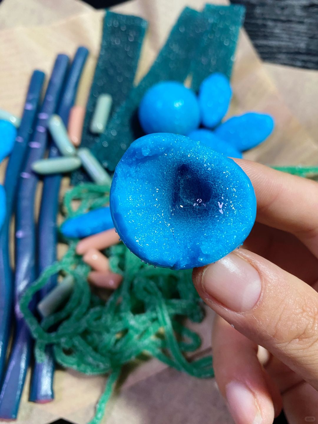 收集了大半年的蓝色糖果们 在我看来都报吃,不是齁甜就是齁酸。 不过反正是万圣节拿来伤害朋友的。w我就尝了尝。 给教练也买了一份,果不其然给他在健身房分了霍霍大家了。