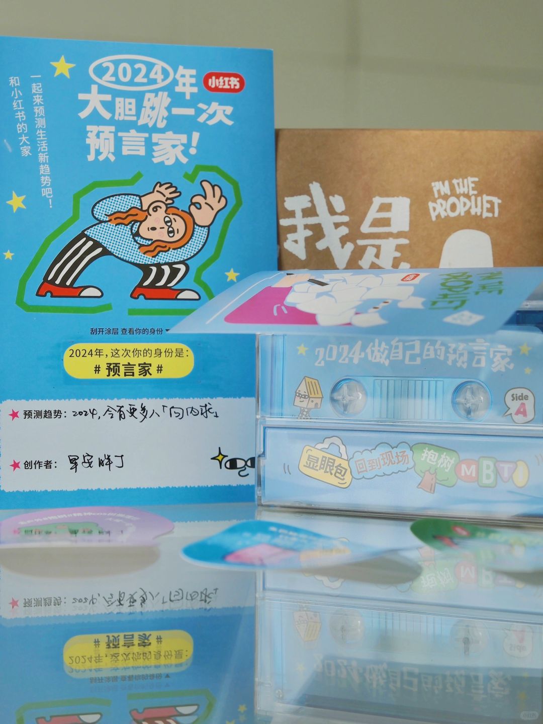 我跳预言家,2024年会有更多人「向内求」 前几天收到了小红书寄来的礼盒, 里面有一盒2023年度生活趋势磁带📼 听完这段酷似时间胶囊的音频, 我也想分享下我对2024趋势的预测。