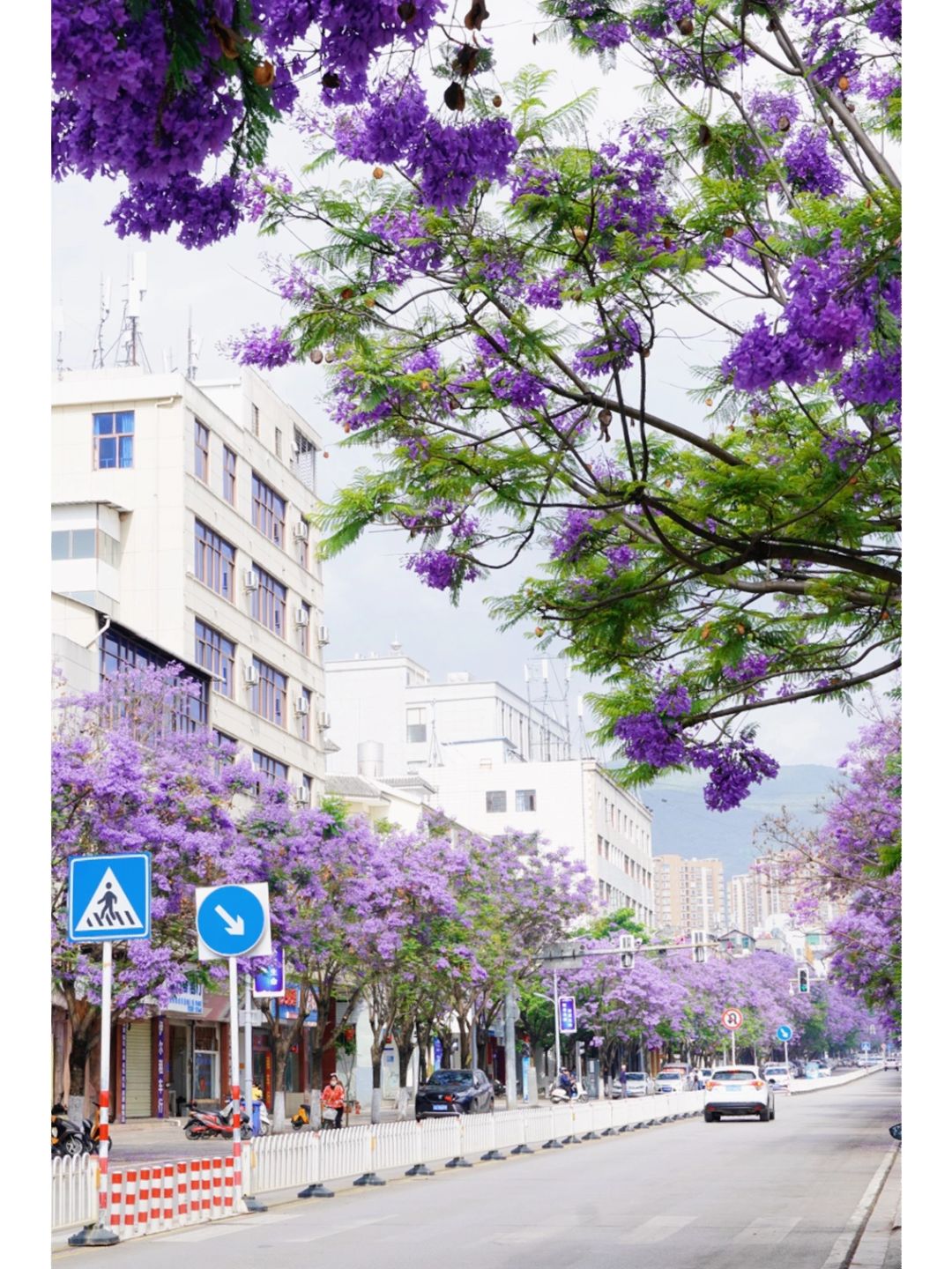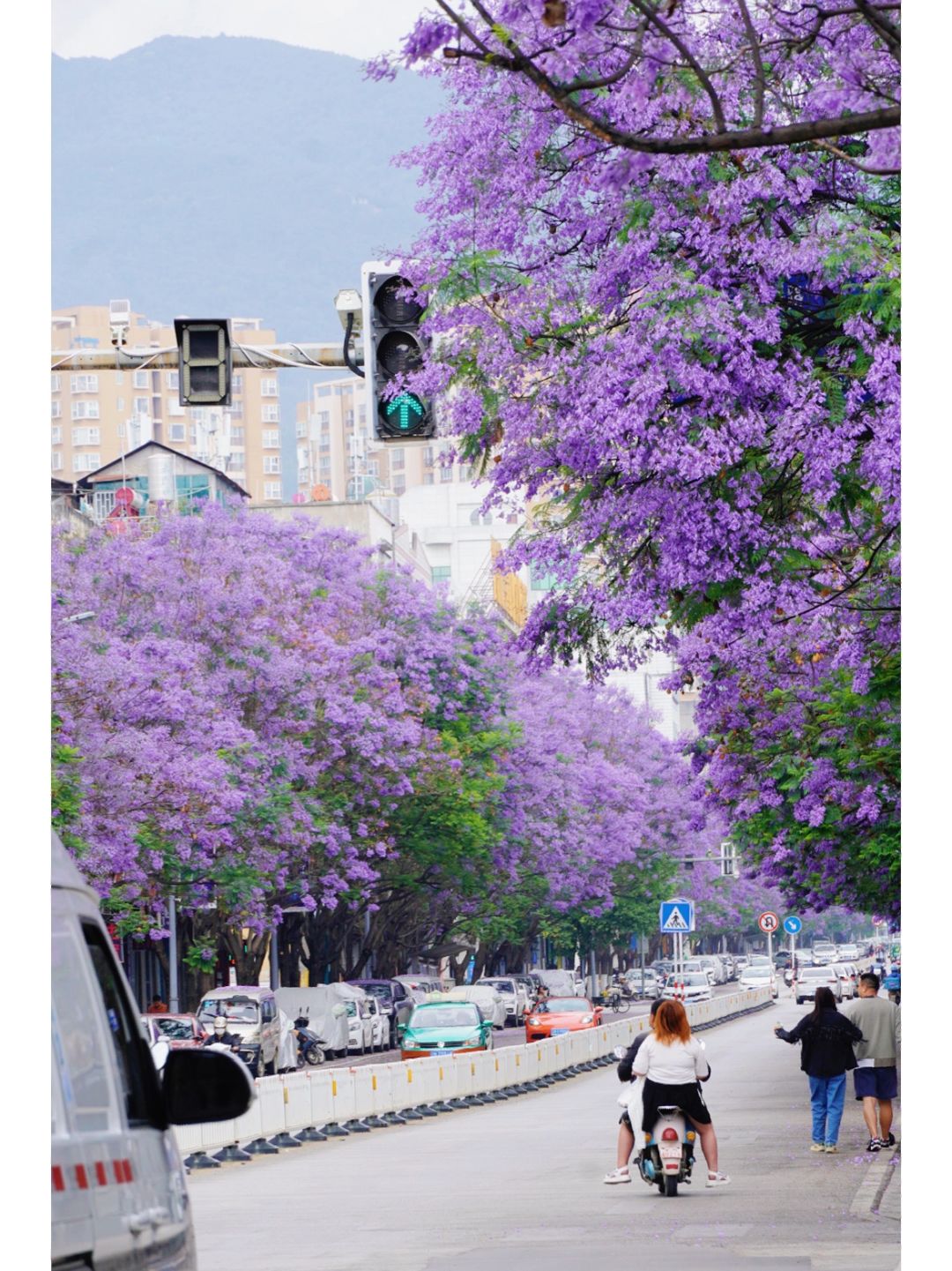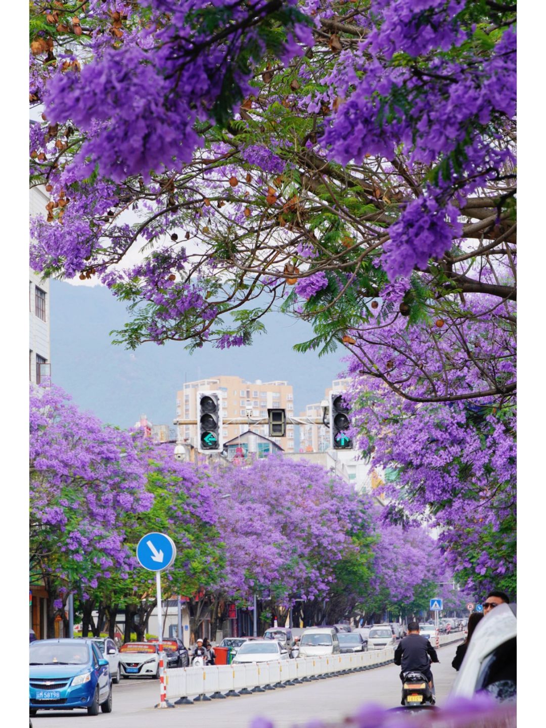 不去云南昆明!偶遇蓝花楹的紫色限定浪漫 🔆5月一定是属于蓝花楹的! ▫️梦幻、恬静、唯美,一树树花开满枝头,有一种遮天蔽日不管不顾的浪漫。 ▫️在云南保山,我们与这一整条街道的蓝花楹邂逅,当车子驶入人民路,每个人都忍不住“哇”起来,从没见过如此整齐、繁茂的队列,从街的这一头,开到那一头,震撼! ▫️树叶不多,枝头挤满花苞,是蓝花楹给路人最大的诚意,给我们这样途径的旅人,最完美的ending。 🌈原来不止云南昆明,偏远少为人知的保山一样能带给大家季节限定的紫色浪漫。 📍地点:保山市人民路 ✔️周围景点: 和顺古镇、腾冲热海、腾冲北海湿地、腾冲火山地热国家地质公园、腾冲悦椿温泉村、滇西抗战纪念馆国殇墓园、固东银杏村、高黎贡山国家级自然保护区、荷花温泉旅游度假区、腾冲原乡栖花岭景区等。 🔆下一篇更: ▫️腾冲三天两晚亲子自驾游 ▫️芒市两天一晚亲子自驾游 💪敬请期待