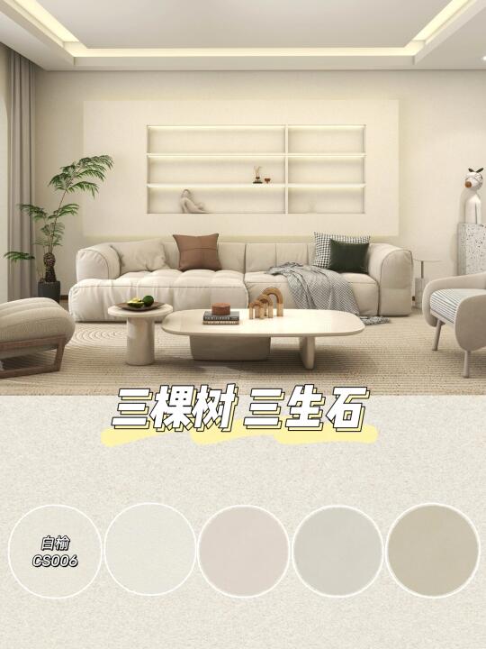 选对墙漆在硬装阶段很重要,一定要把色卡拿回家实际比对!门店看了三棵树国石艺术漆的效果很心动,过段时间准备重刷墙面了,超期待!