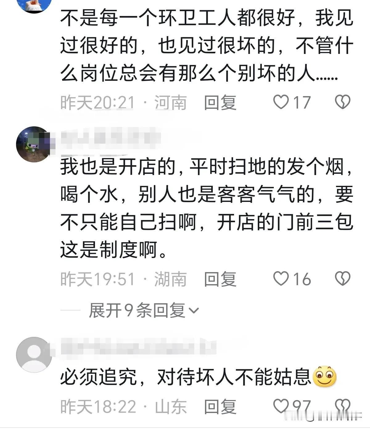 近日广东惠州,一位清洁工人和一位餐馆老板发生争执,原因是老板交了清洁费用,但是清洁工人,每次到她店门口都不打扫,还跟店主要东西,店主不给清洁工好处,清洁工就把垃圾扔到餐馆内,还骂餐馆老板有病,最后餐馆老板报警,清洁工和她的主管一起道歉,餐馆老板觉得清洁工挺大岁数了,就算了没有继续追究。 网友:我也是开店的,平时都给扫地的发个烟,喝个水,别人也会客客气气的,要不然只能自己扫。