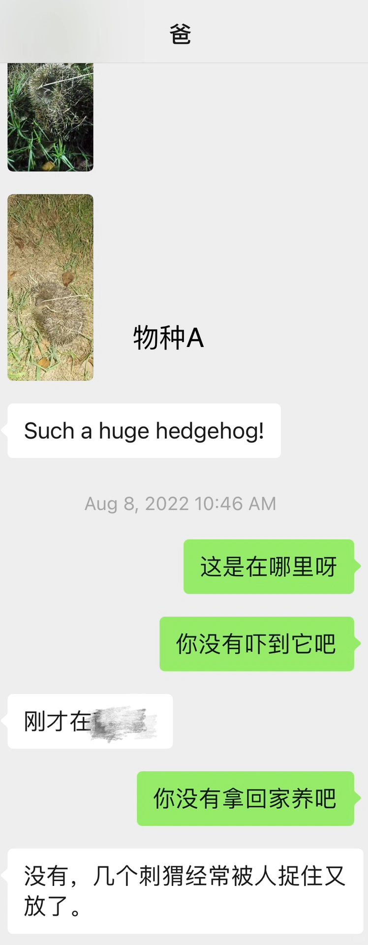 一旦被我爸碰见,我爸一定会控制不住他想要打招呼的心,不管遇上的是刺猬🦔、夜鹰🦅(救下来后放飞了)、小狗🐕、小猫🐈、小鸟🐦、小鸭子🦆、小鸡🐤、小松鼠🐿️、……