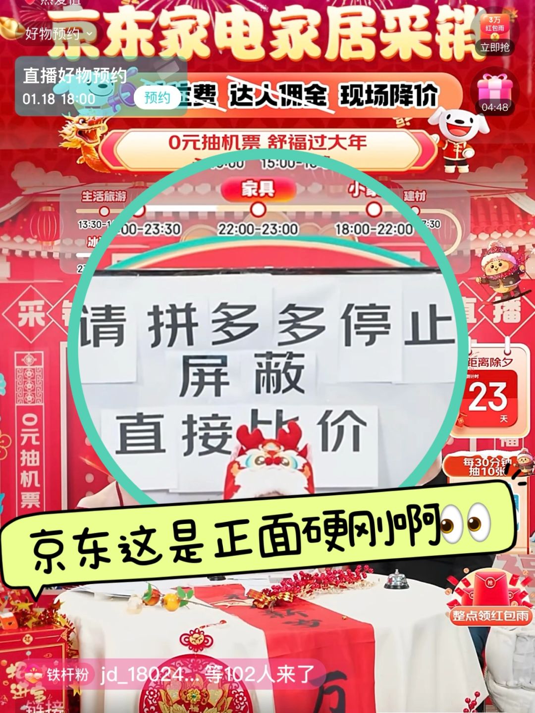 赶紧搬好小板凳去京东采销直播间蹲了一会,好家伙,算是让我弄明白了👉👉京东采销美女老板被网友吐槽说价格优惠的不到位,美女老板一调查,原来是拼夕夕把京东IP地址屏蔽了,他们想比价也比不了🤣