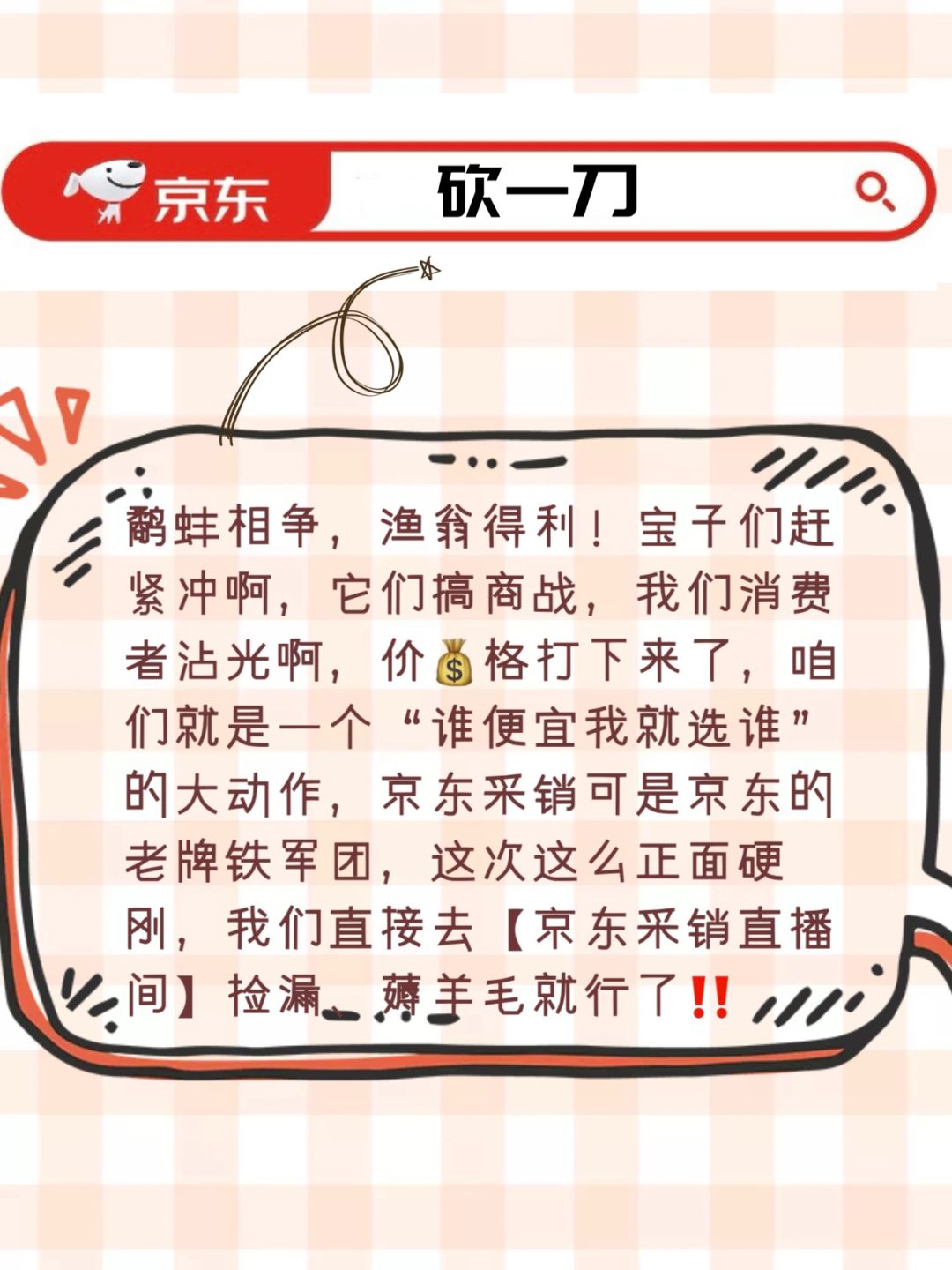 鹬蚌相争,渔翁得利!宝子们赶紧冲啊,它们搞商战,我们消费者沾光啊,价💰格打下来了,咱们就是一个“谁便宜我就选谁”的大动作,京东采销可是京东的老牌铁军团,这次这么正面硬刚,我们直接去【京东采销直播间】捡漏、薅羊毛就行了‼️