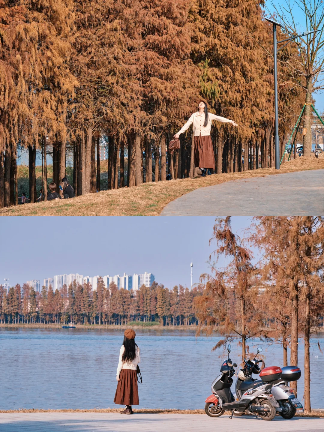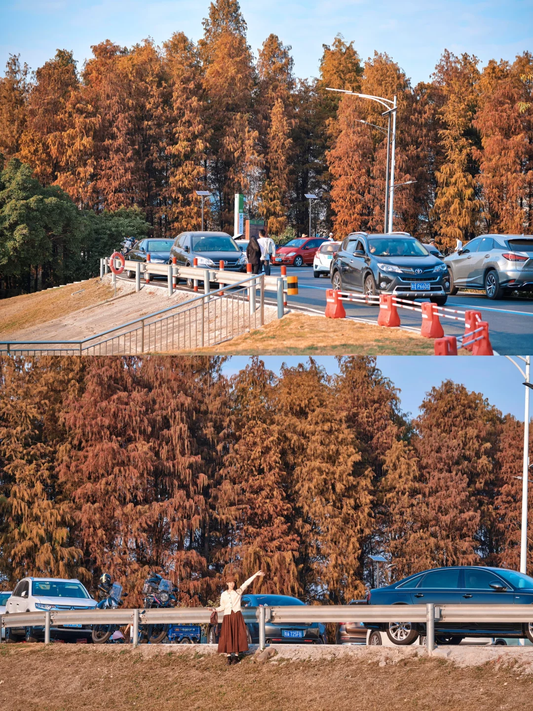 这段时间南方的落羽杉🌲🌲可谓是超级出⭕️一片片橘红色的落羽杉直冲云霄 在午后的暖阳里☀️☀️阳光洒在橘红色的枝头上,仿佛置身于一幅美丽的画卷中 每一片落羽杉都自然而然吸引着无数小伙伴前往打卡,到处都是人从众𠈌👨‍👩‍👧‍👧👩‍👩‍👧‍👧👨‍👨‍👧‍👦 那么🙋🏻‍♂️🙋🏻‍♂️不妨避开人裙来这里美美地拍上一组大片,这里景美人少,于广州隔江相望,有着数十公里的沿江落羽杉绿道🌲🌲 超级适合: ✅拍照 ✅露营 ✅钓鱼 ✅野餐 ✅跑步 ✅溜娃 这里都是一个宝藏之地‼️ ‼️这是便是佛山顺德的乌洲水闸‼️ 这里没有没有密密麻麻的人裙,带上你的相机📷成片成片的落羽杉可以尽收囊中,肆无忌惮地沿着江边拍照📷 在江边,落羽杉与倒影相映成趣,形成了一幅美丽的画面 站在江边,可以感受到微风拂过脸颊,听到江水轻轻拍打着岸边的声音。远处的落羽杉林在阳光的照耀下闪闪发光,让人心旷神怡 📍地点:乌洲水闸 🚗自驾:直接导航佛山市顺德乌洲水闸(江边小路可以找个宽敞点的地方停车) 🚇交通1:佛山地铁三号线伦教站出来打车十分钟到达 🚇交通2:广州地铁三号线市桥站出来打车三十分钟到达 [清单R]小tips 1⃣️建议小伙伴们下午三点后到达,尽量选个有阳光的天气,阳光洒在落羽杉丛林中,真的巨美 2⃣️小伙伴们出门记得做好防晒,准备好水噢 3⃣️顺德有超级超级多好吃的,回去的时候,小伙伴们不要忘了大吃一顿