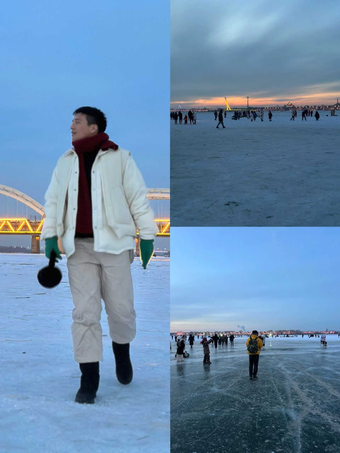 📖Tips 1.冬日walk必定要做好保暖措施,可以在圣索菲亚大教堂对面的衣之彬采购,超乎你的想象 2.冬日哈尔滨16点就要天黑,想看松花江落日的一定要控制好时间。 3.松花江冰漂很容易宰客,10元/人,千万别被骗了。