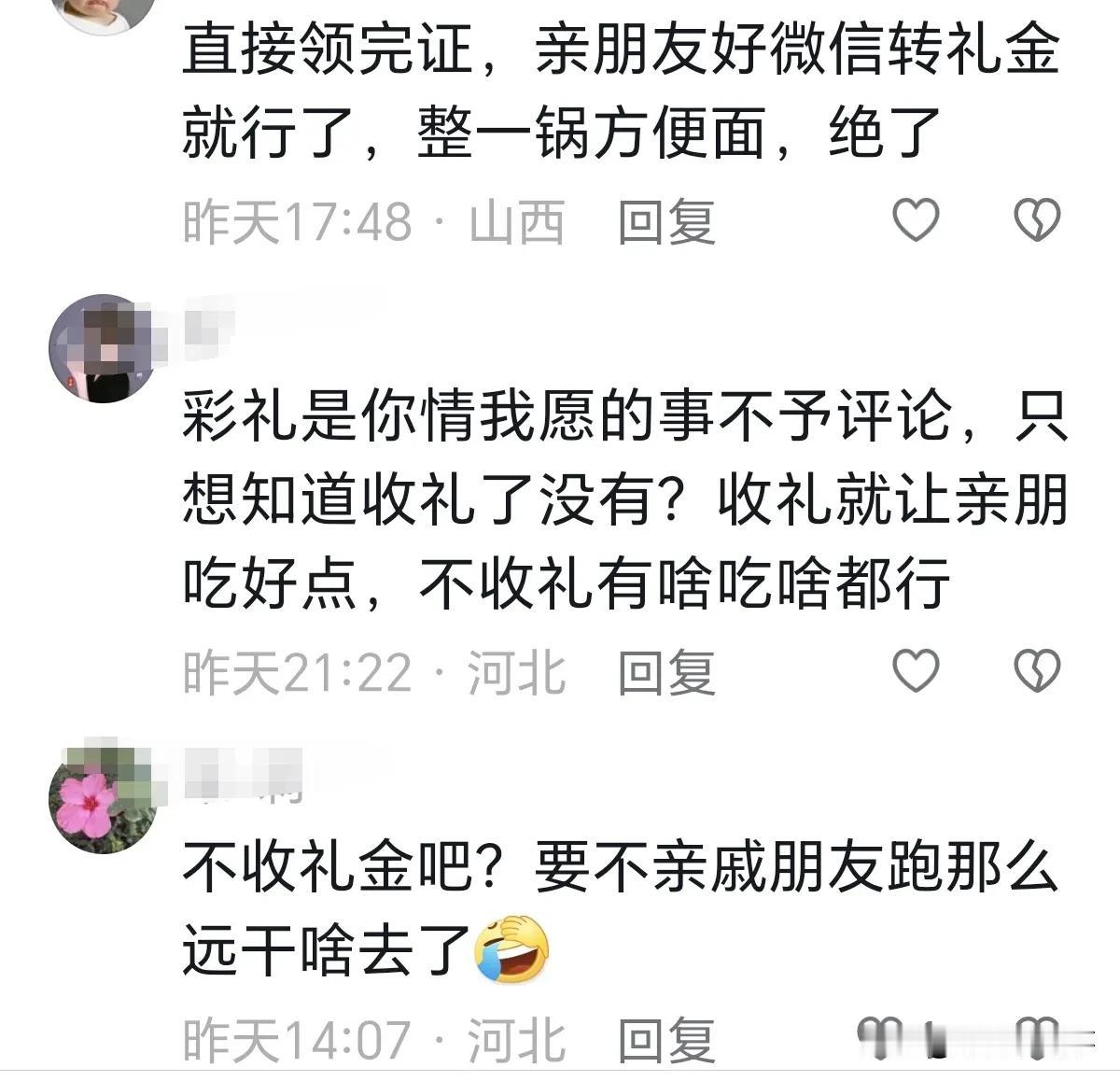 近日邯郸,公婆是残疾人,女子零彩礼出嫁,旧房旧家电酒席吃鸡蛋泡面,引发争议。 娘家人说一分不要,爱情不应该用金钱来鉴定。 网友:直接领完证,亲朋友好微信转礼金就行了,整一锅方便面,绝了。 网友:彩礼是你情我愿的事不予评论,只想知道收礼了没有?收礼就让亲朋吃好点,不收礼有啥吃啥都行。 网友:不收礼金吧?要不亲戚朋友跑那么远干啥去了。 网友:我是男的,家里没钱,我也得攒几万彩礼再娶媳妇,父母是残疾人,女方愿意嫁我,那我也不能让人家丢人。