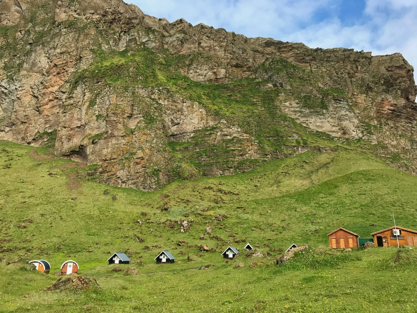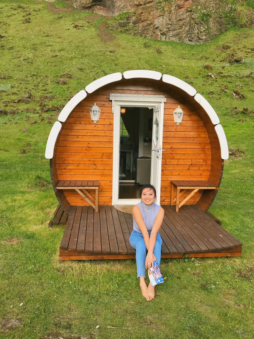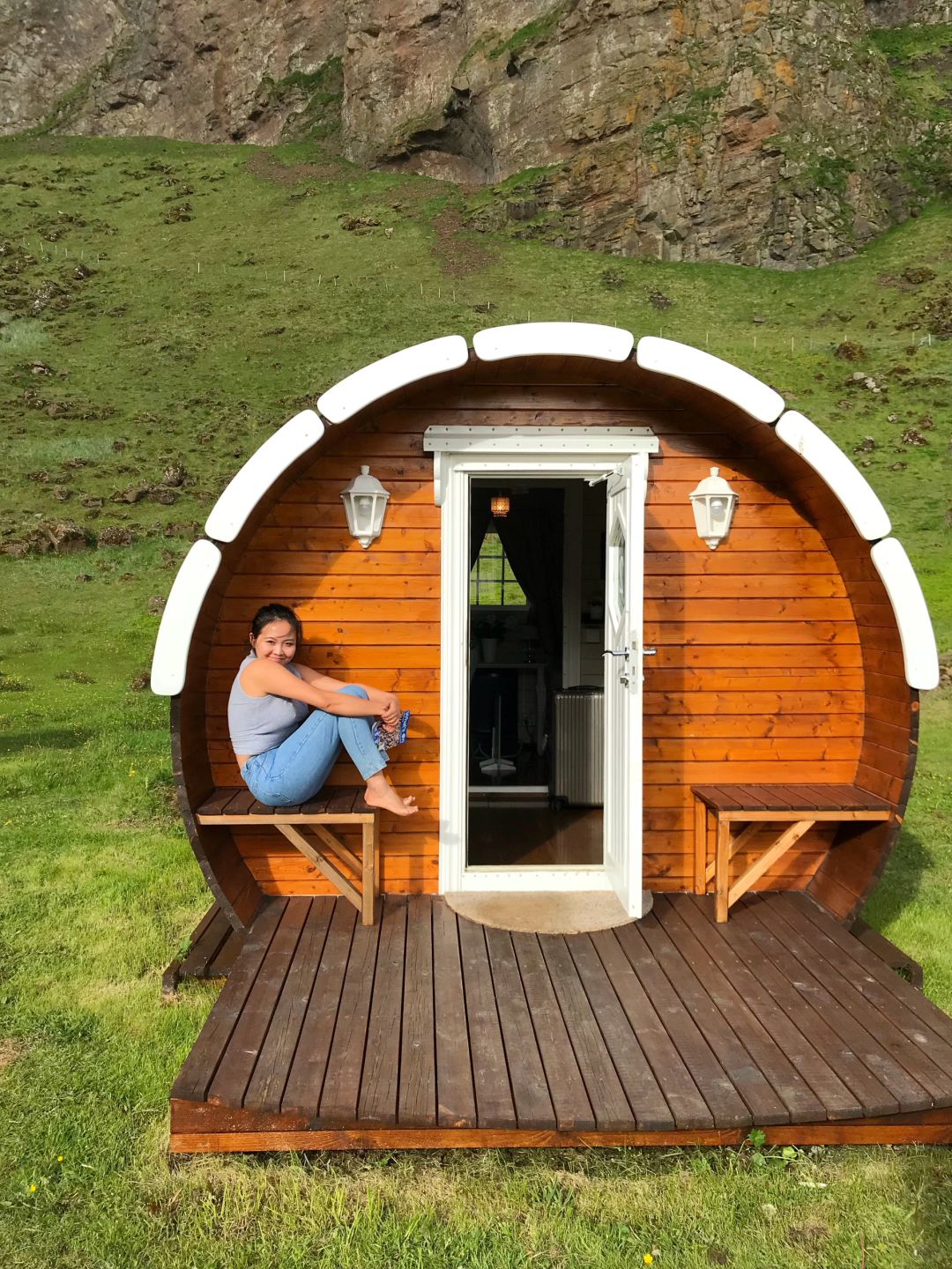 冰岛啤酒桶小屋童话故事露营体验 开门见山,左转见海,冰岛外岛上的室外桃园上豪华露营🏕️ 西人岛Vestmannaeyjar位于冰岛🇮🇸南部,需要乘坐渡轮前往,这里人口只有五千,却培养出了前几年在世界杯上大放异彩的冰岛队;这里是冰岛国鸟海鹦鹉puffin的栖息地,游客可以近距离接触这种大嘴可爱的小鸟,我去的时候是极昼时的夏天,夜晚擦着拖鞋就能看到满山的puffin🐧 很多人会选择冬天极夜时来冰岛追极光✨但夏季的冰岛也有很多童话般的体验,西人岛的豪华露营📍Glamping&camping就是我当时的首选,这里房子很少,需要提前官网预定,露营小屋的附近有一个总营地前台,有洗浴和厨房,很适合入门级露营⛺️,还有很多人来这里体验海边高尔夫⛳️