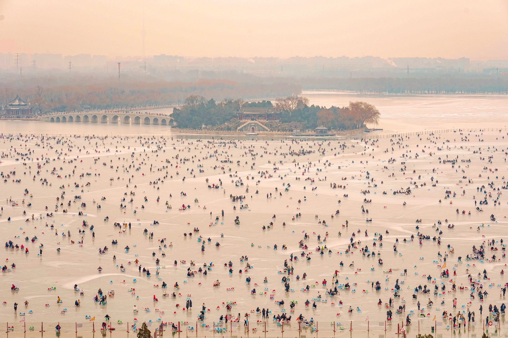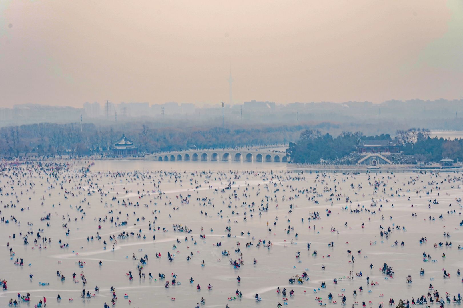 10年前颐和园还没开冰场,游客都是自由下冰玩,也没人管
