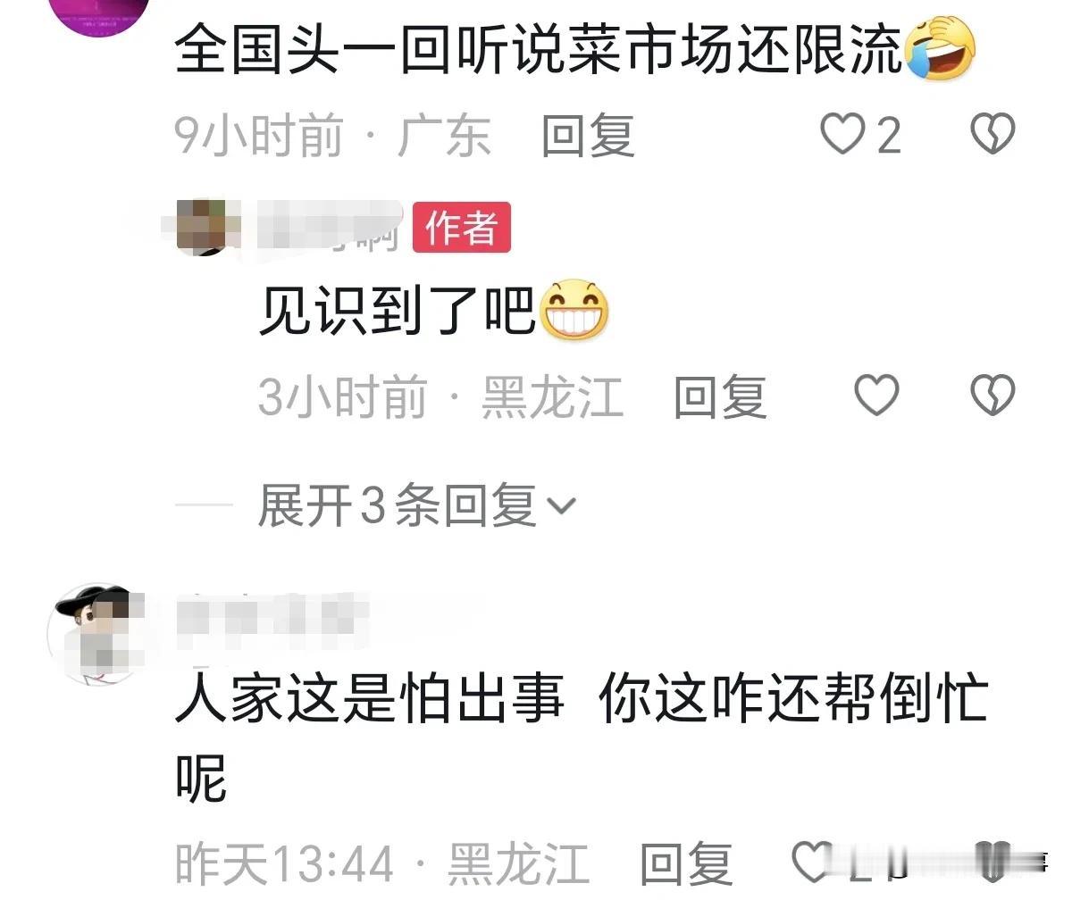 哈尔滨今年真的是火了,道里菜市场都限流了,一位哈尔滨本地的大哥,发了一个视频教外地游客,怎么通过别的门进入菜市场,哈尔滨本地网友指责,本来限流就是为了保证小土豆的安全,怕人多她们被挤坏了,怎么还教别人怎么走后门呢? 网友:全国头一回听说菜市场还限流[捂脸]。#哈尔滨真是火爆#
