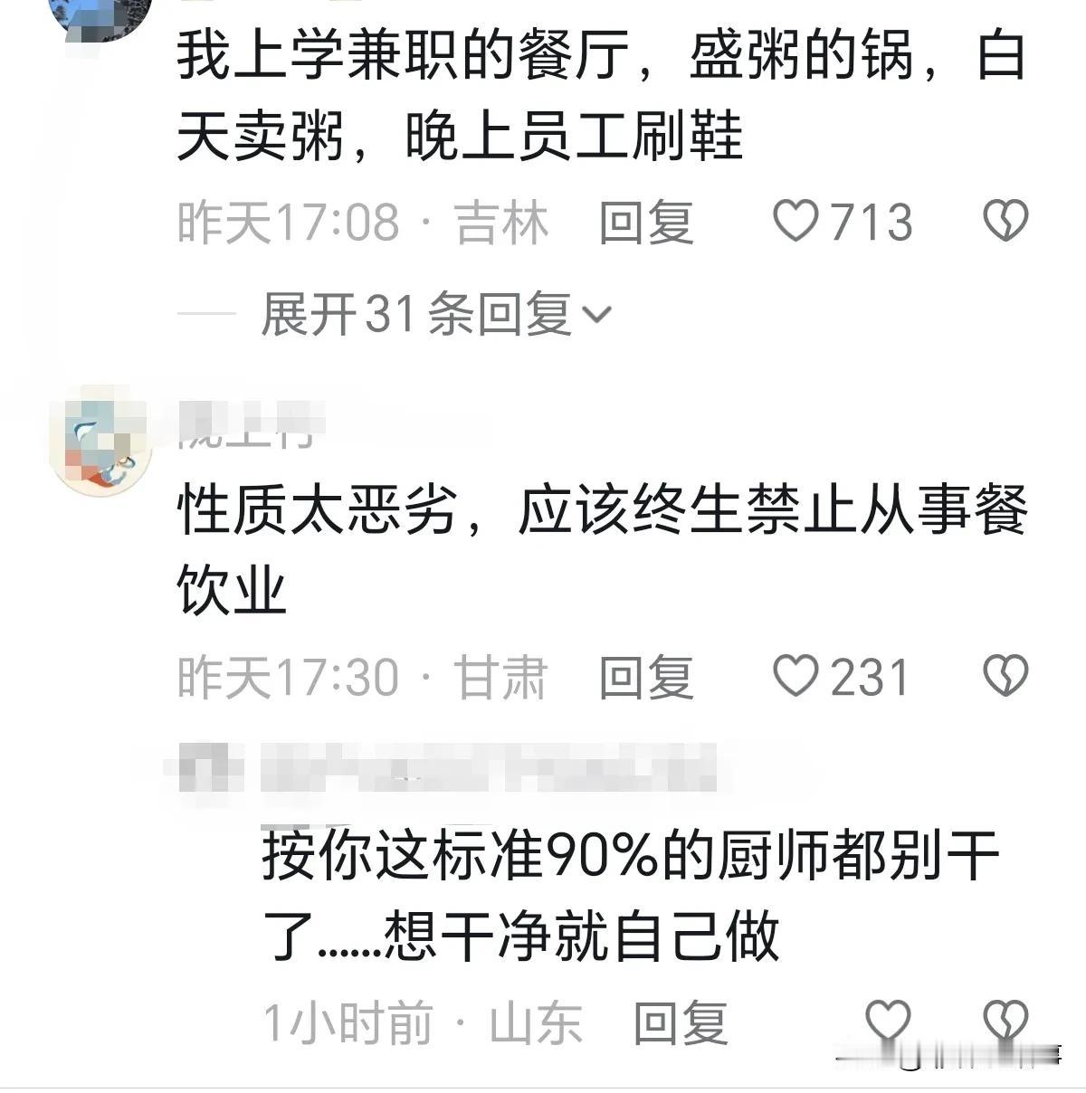 拍摄者偶然拍到厨师用烤箱烘干自己的鞋子,酒店回应:我先帮您核实一下,后厨都有监控的。 网友:我上学兼职的餐厅,盛粥的锅,白天卖粥,晚上员工刷鞋。 网友:性质太恶劣,应该终生禁止从事餐饮业。 网友:按你这标准90%的厨师都别干了...想干净就自己做。 网友:难道干净卫生,不是做餐饮的最低标准么?评论区为什么帮厨师说话。