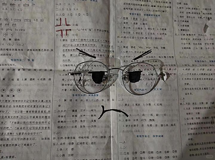 试卷+眼镜 反正就是没事干一共做了俩,那眼睛是我的