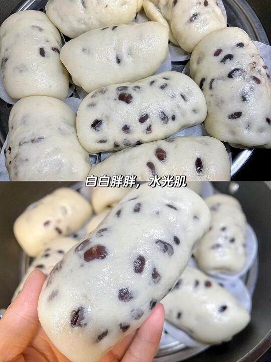 🫘建议新手用自发粉做馒头,和面只需要加水就行!做出来的馒头口感Q弹!不回缩,水光肌质感!