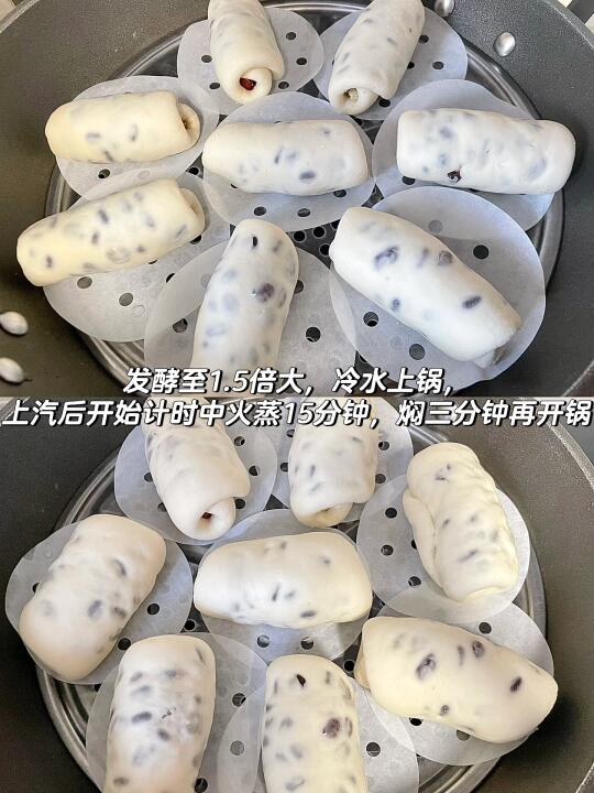 5⃣️发酵至1.5倍大,冷水上锅,上汽后开始计时中火蒸15分钟,焖三分钟再开锅